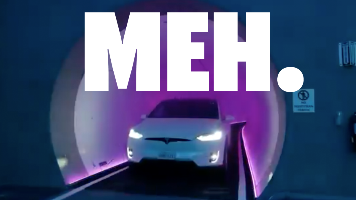 In a revelation that surprised absolutely nobody who’s been paying even the smallest bit of attention to Elon Musk’s under-Vegas tunnel project for the past few years, the underground loop beneath the Las Vegas Convention center was finally unveiled today, and it’s about as exciting as a sheet of unpainted drywall discarded in a closed office park. It’s just some Tesla Model 3s driving slowly in a tube, and if that gets you excited then I hope you enjoy the many orgasms you get while driving down a spiral ramp in a parking deck.
