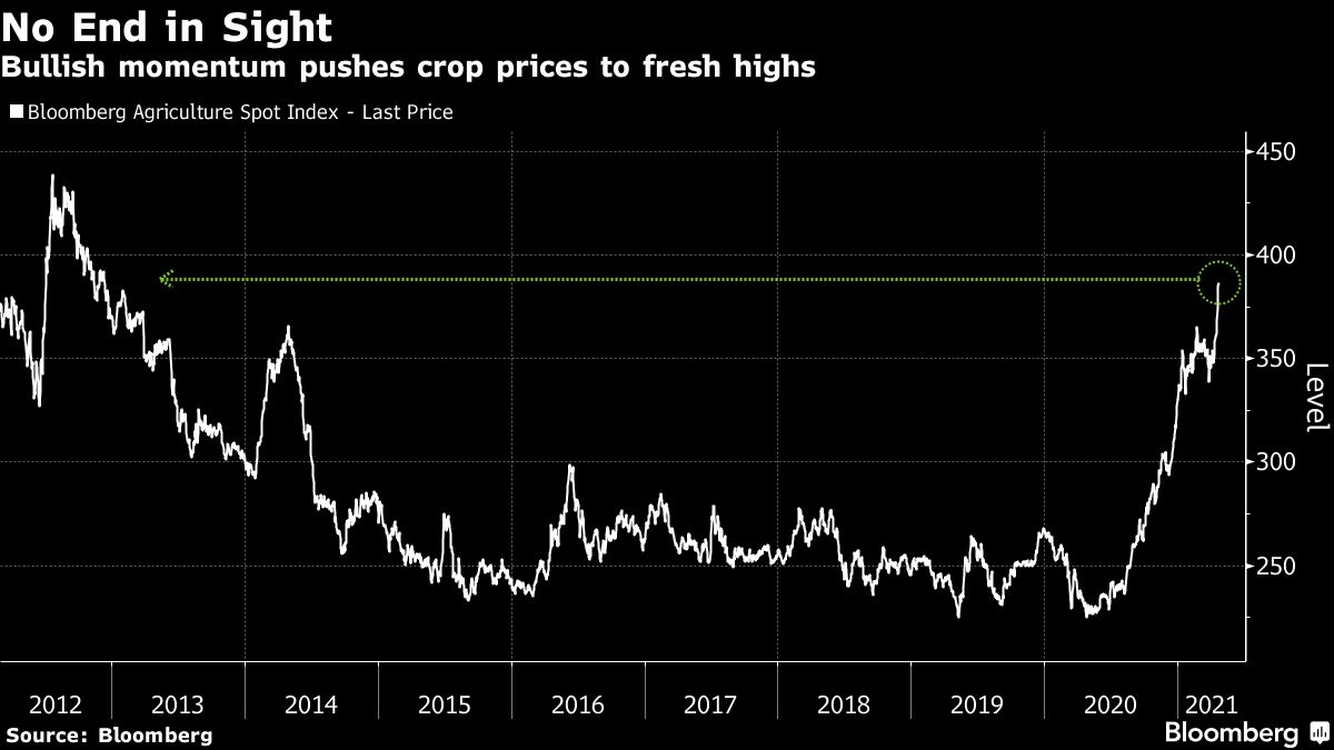 Source: Crop prices soar to 8-year high, renewing food inflation fears – BNN Bloomberg