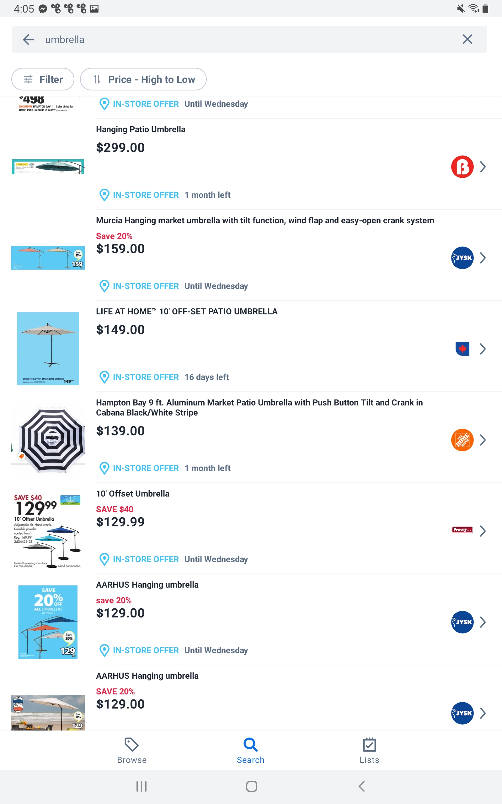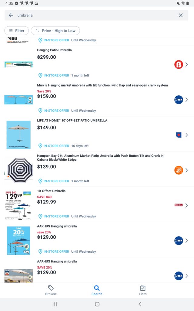 A quick flipp.com search for “umbrella” showed the following: