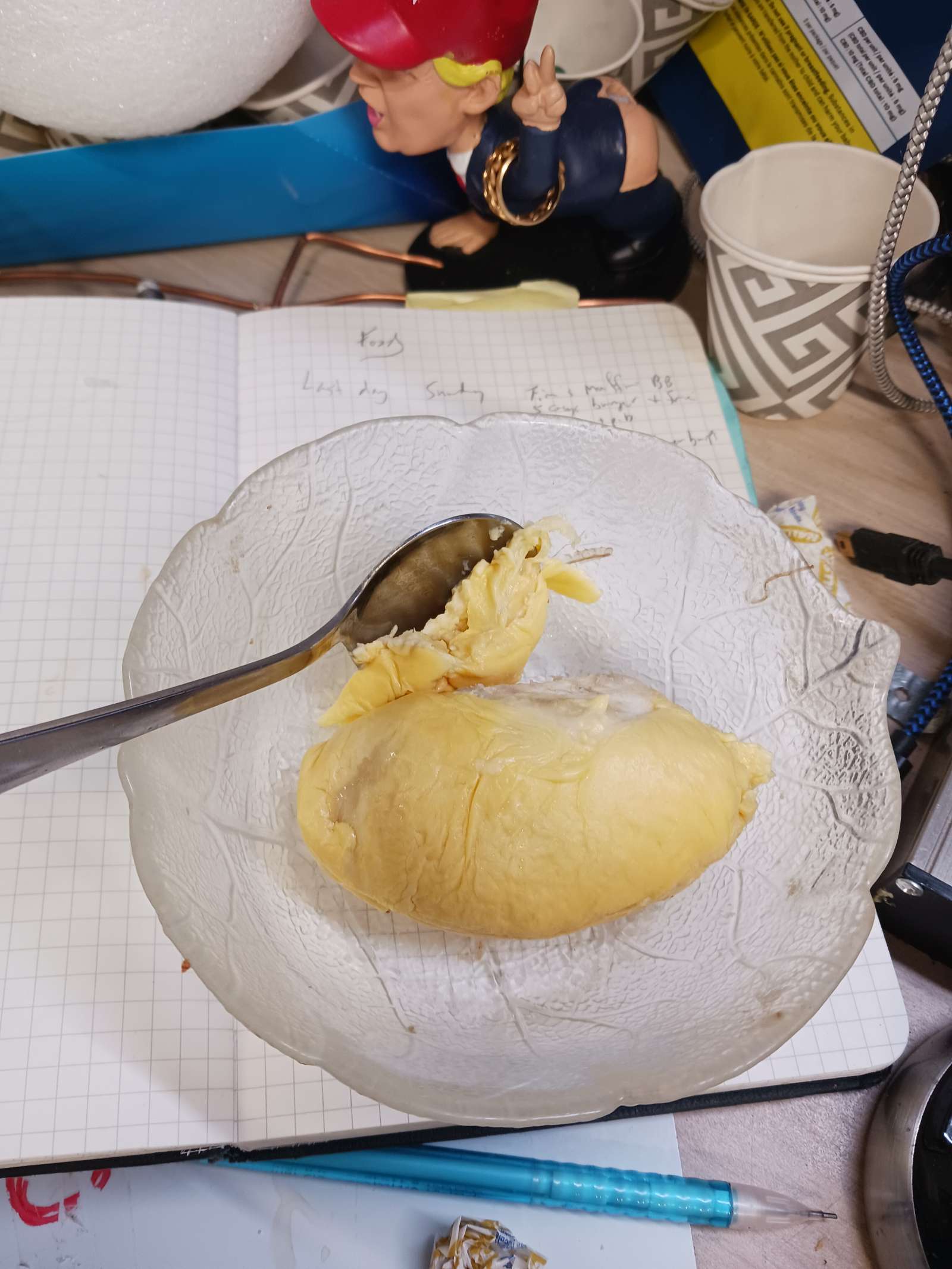 Here’s what I rote when eating the first lober from the durian Katherine bought from ???? in Toronto: