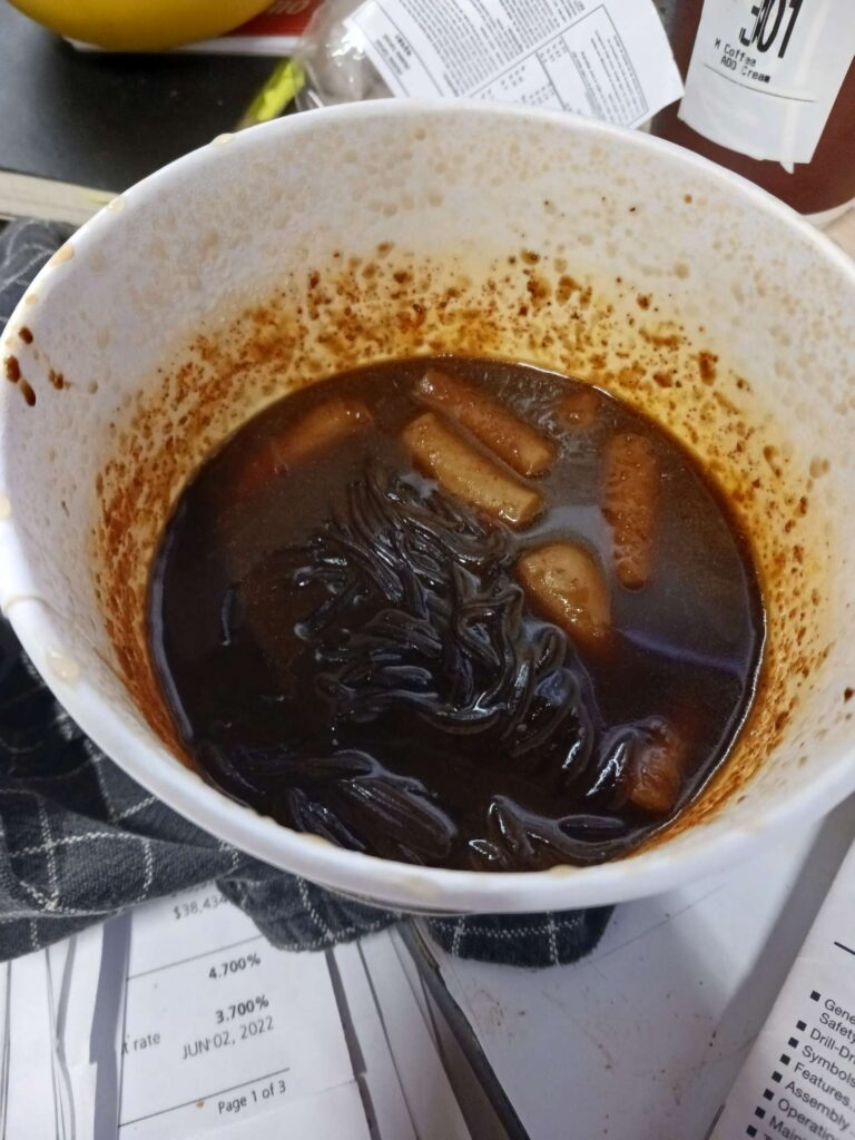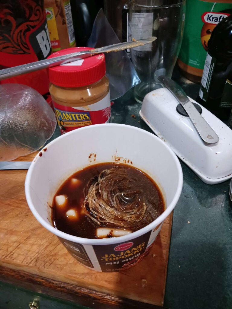 Posted in Article Korean rice cake and noodles 2022-07-29 Leave a Comment on Korean rice cake and noodles Katherine gave ths to me. Bought it a World Foods in TO? Some sort of Korean rice cake with glass noodles and a dark sauce.