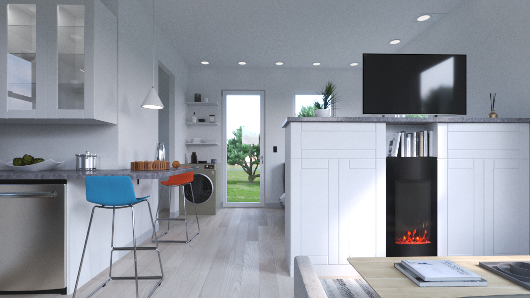 An amazing 375 sq ft ADU delivered with a full size bathroom, kitchen, appliances and tall ceilings with big windows for under $50k.