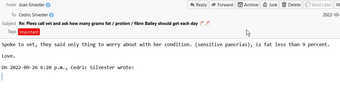 2022-09-06 – Baylie should have 9% fat in her diet .
