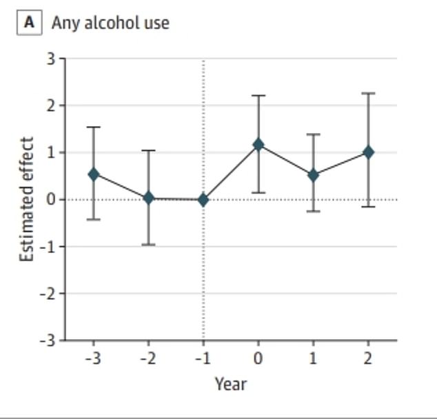Researchers looked at data for 4.2 million people in all 50 states from 2010 until 2019. They found significant increases in alcohol use in states where pot was legalized for recreational use.