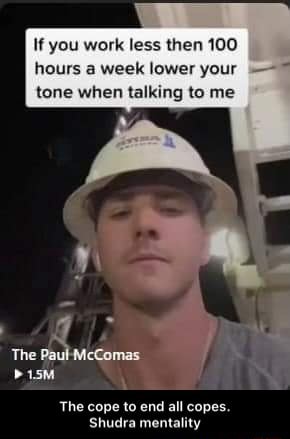 TO-DO: find the meme with the oil rig? guy say “don’t talk to me unless you work 100 hrs/week.