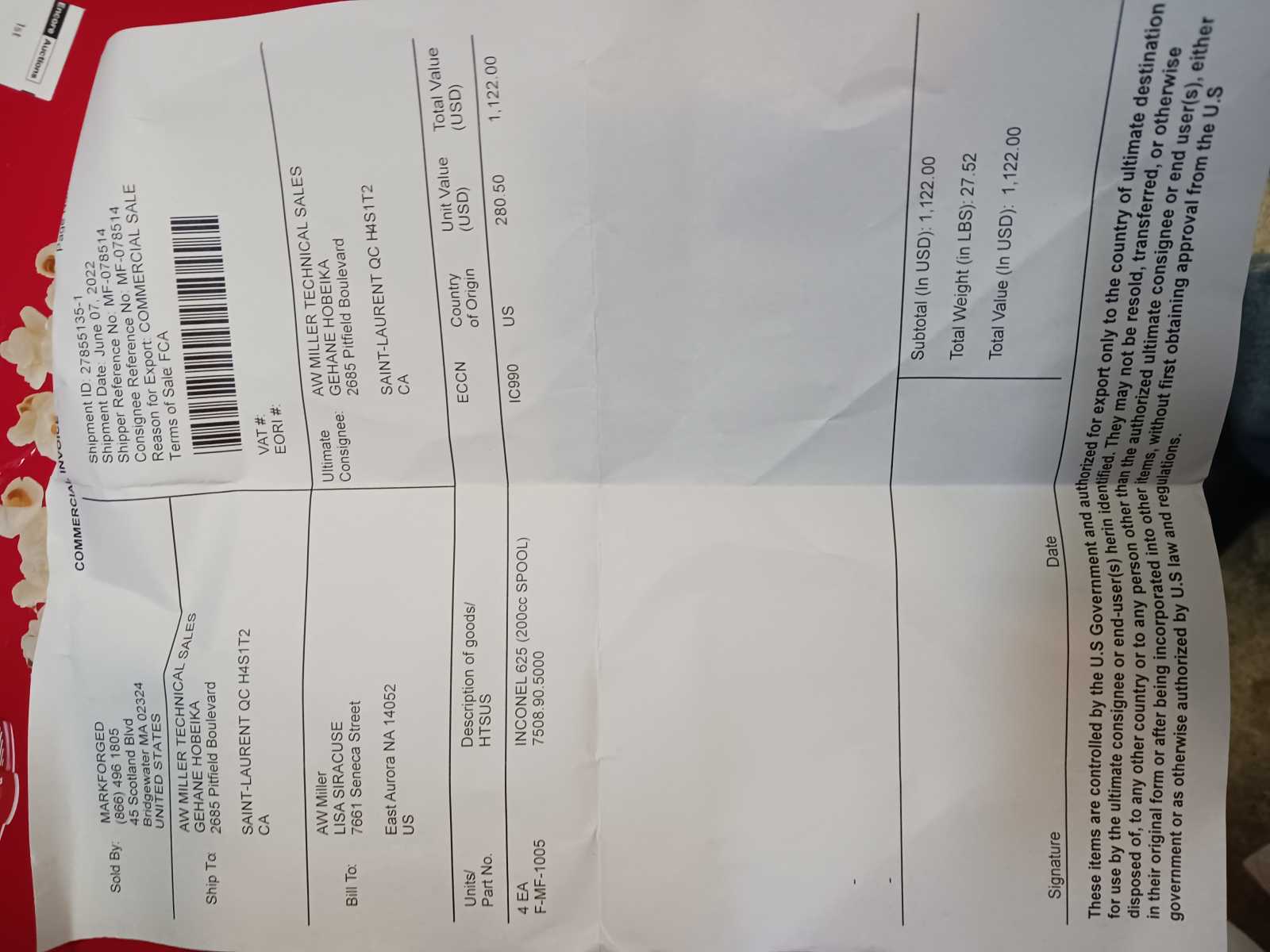 A roll of Markforged Inconel 625 Spool 200cc
