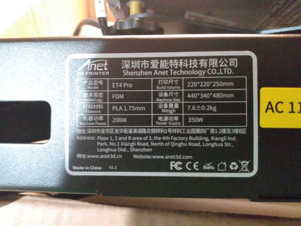 Anet ET4 Pro 3D Printer – has a broken connector? likely replaceable or fixable. possibly used. needs assembly.