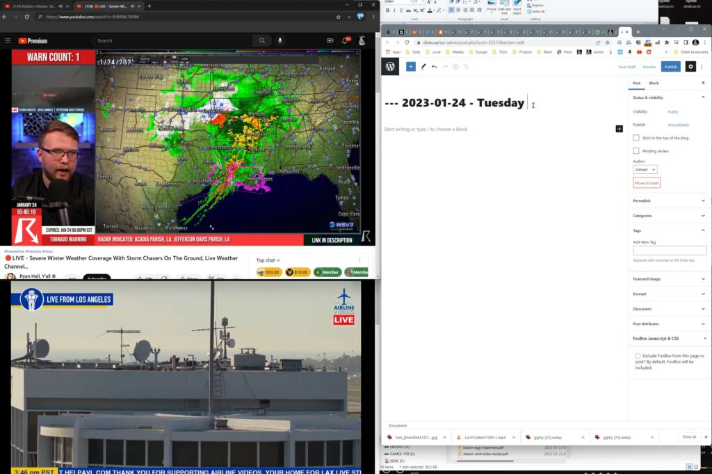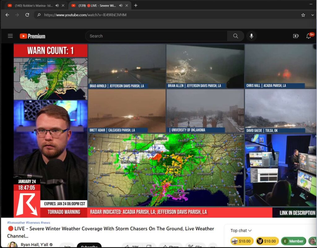 the livbe youtbe restreamers are doing a way better job than the pros (twn, cnn, cbc, ) of coveringh things like torndopes in houton area; some guy with a resteraming software and a few amatue correpsondents and live streamers driving the area, his ability to combine all theis and stream live on youtbe make twn, etc look bad. same can be said fopr the like,sof portland andy,