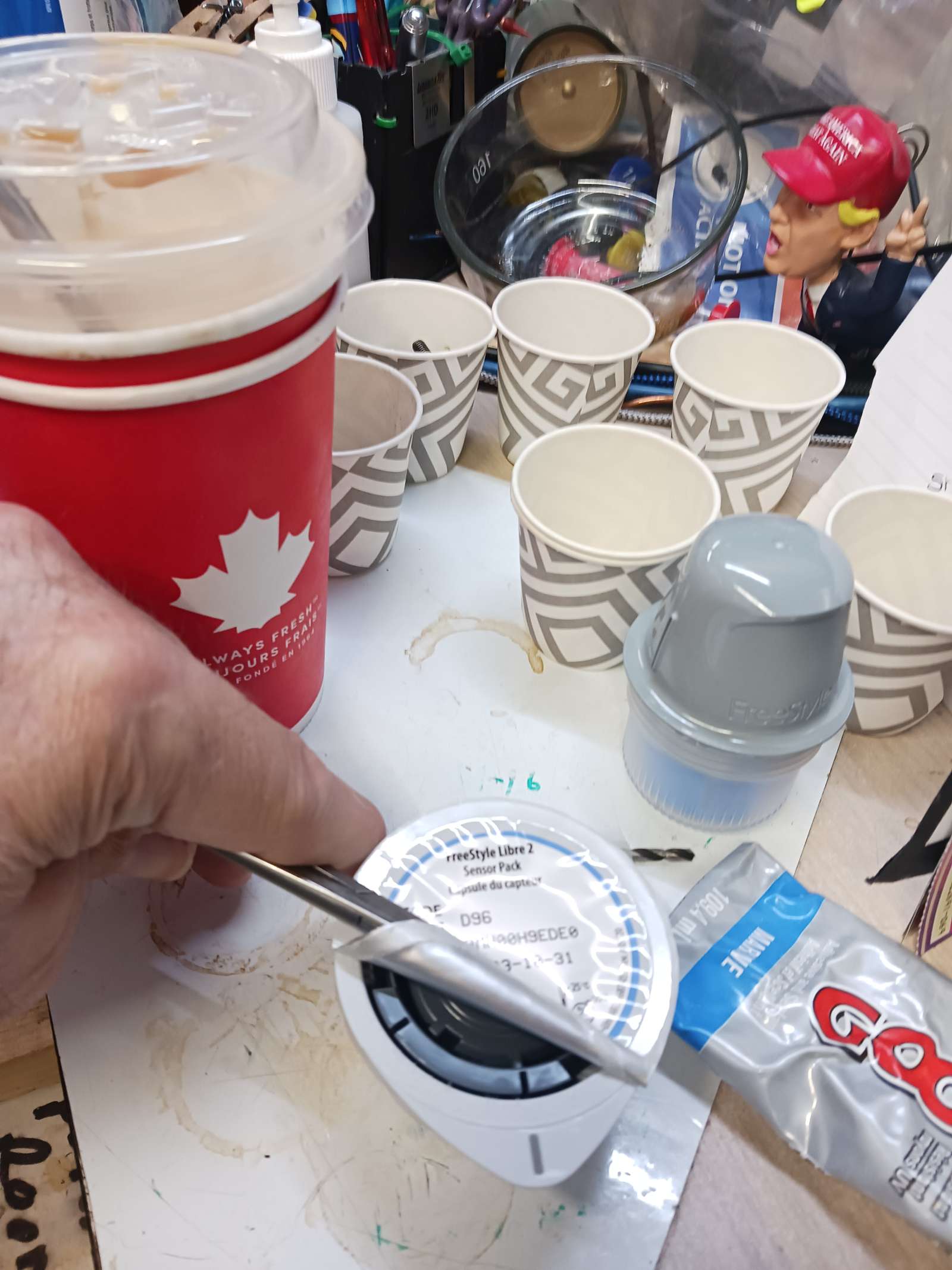 Fairlife milk jugs. too big for teeth. i use the handy jar opener assistive device i have magnetically attached to the fridge (I wonder if I has a picture of that… 3 mantes later, no find… so will take pic next time I see it…