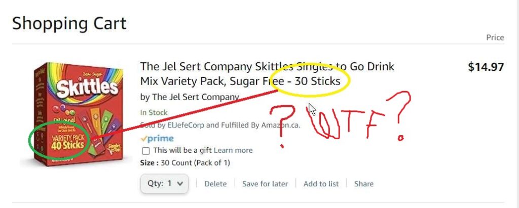 … only to get the 30-pack box added to my cart. BUT IT STILL HAS THE 40-PACK IMAGE.
