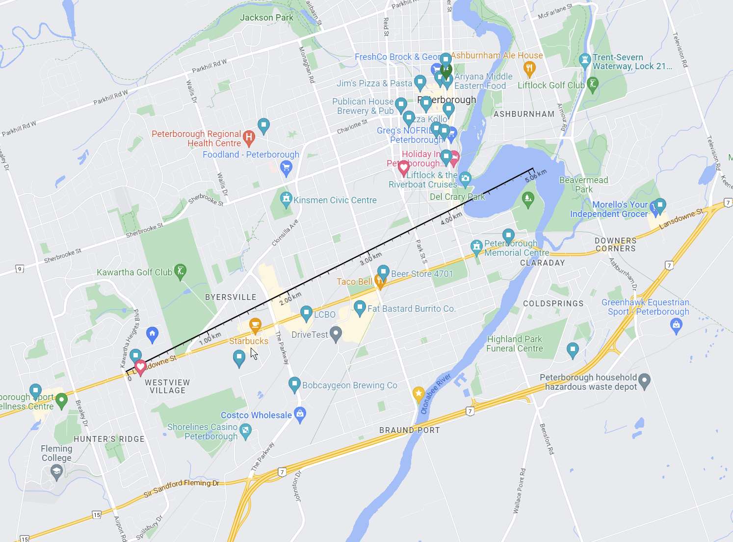 Here’s 4-5km from our house (note the difference in scale; would be better to scale both to the same):