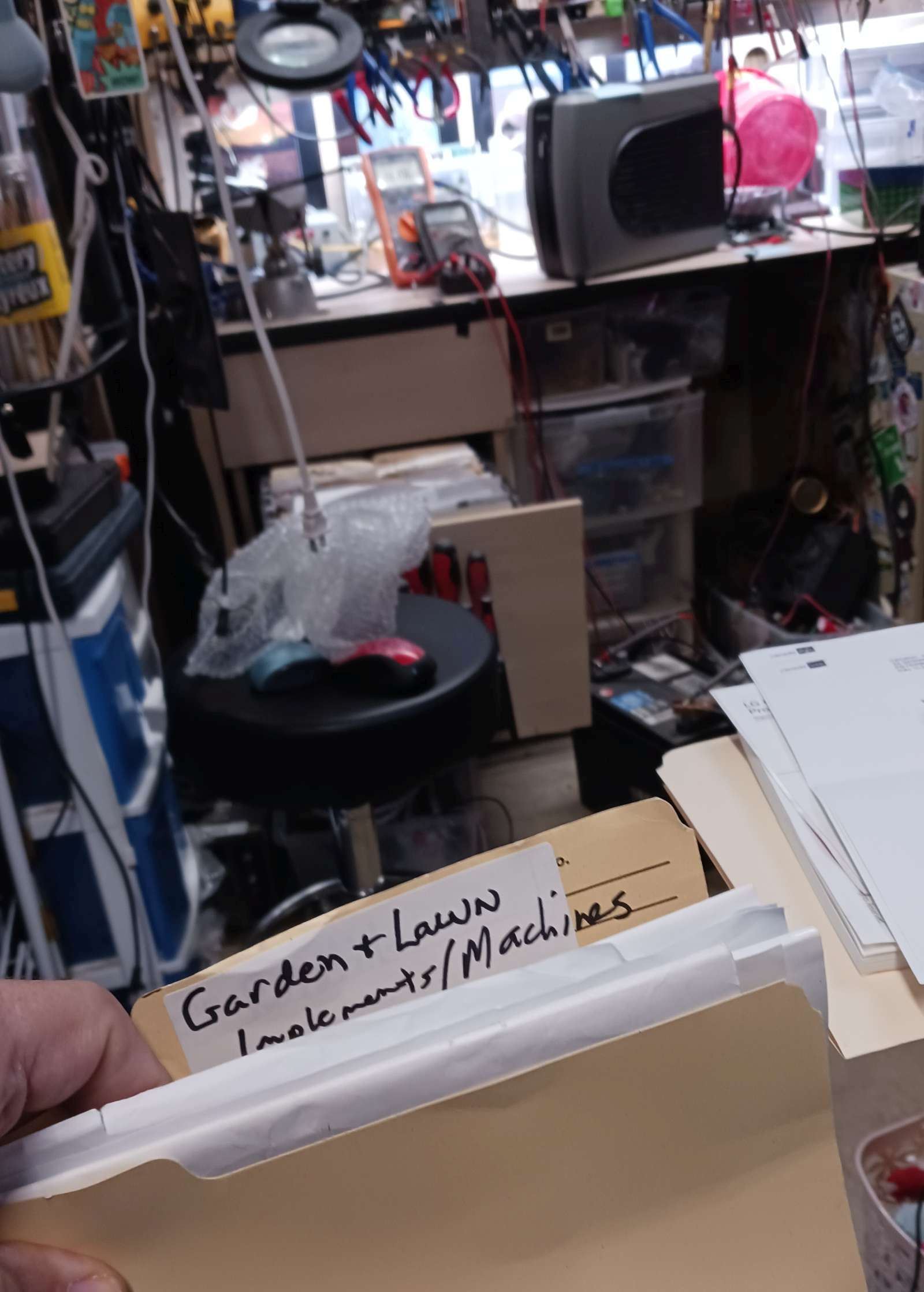 searched the place #1 for manualas and stuff 9my desk’s leftside 2-draed file cabinet, lower drawer, has manya things manuals I might need to find (but WHY NOTY ALL DIGHITAL?) ; not there, so check place #2 (lower draw of workbench has further manuals (and there is nother pblace, the zippered nylongh black file foledet tyhng.)