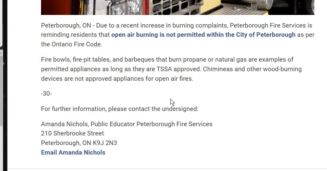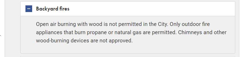 so no wood burning, but gas or propane allowed. this suggests it’s the smell of smoke and possibly sparks are the problem, not so much the hot thing in the backyard? Need to find out what TSSA is