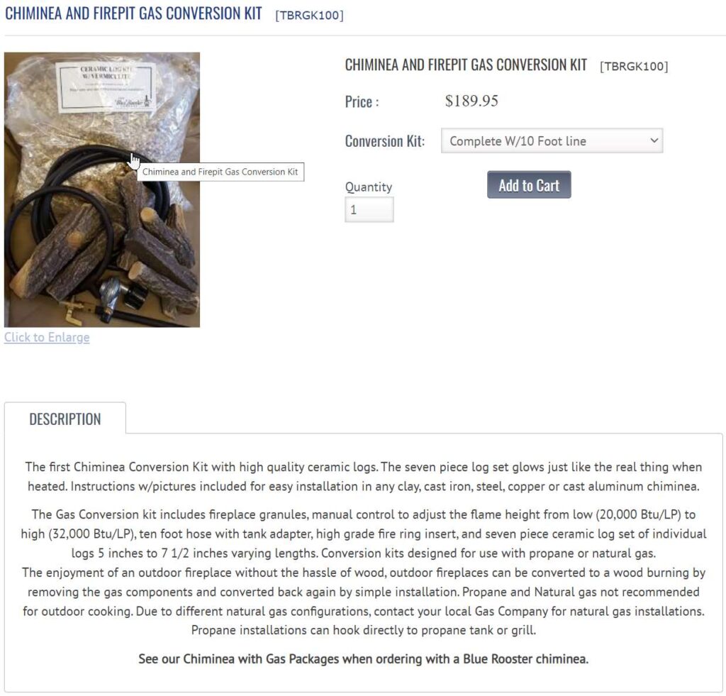 as always, gas chimeas and conversion kits already exist: https://www.thebluerooster.com/catalog/dragonfly-lpng-p-67.html?osCsid=ff6a5vi8qhfgrdd3lp80ebi5r5