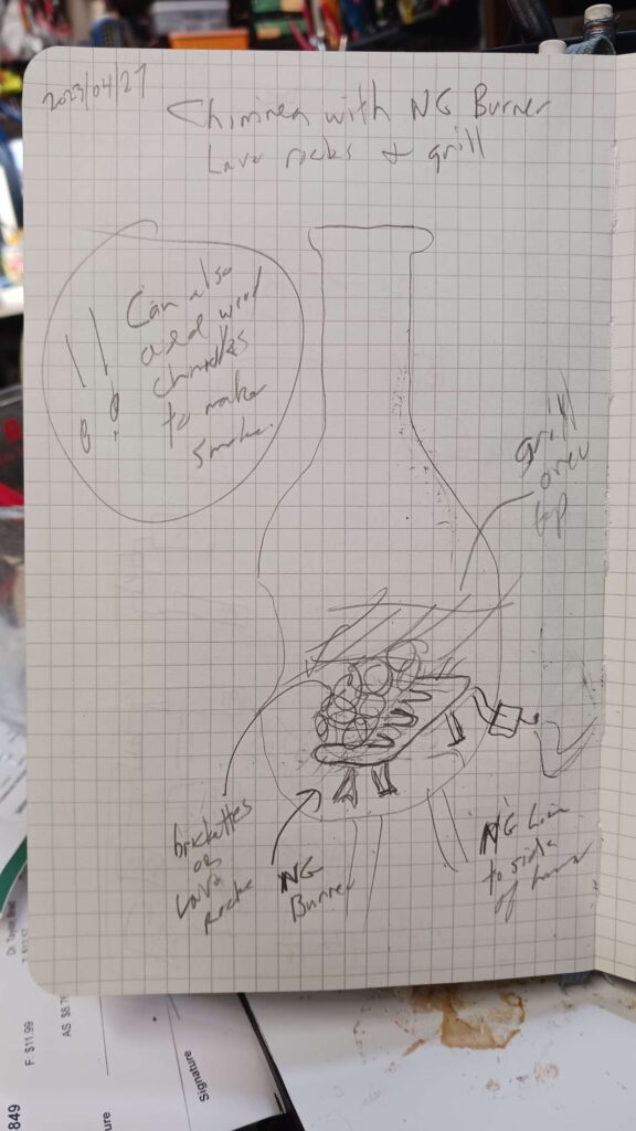 what about a chimnea with a gas burner with lava rocks ro ceramic briquttes? TO-DO: i should sketch? i sketched!