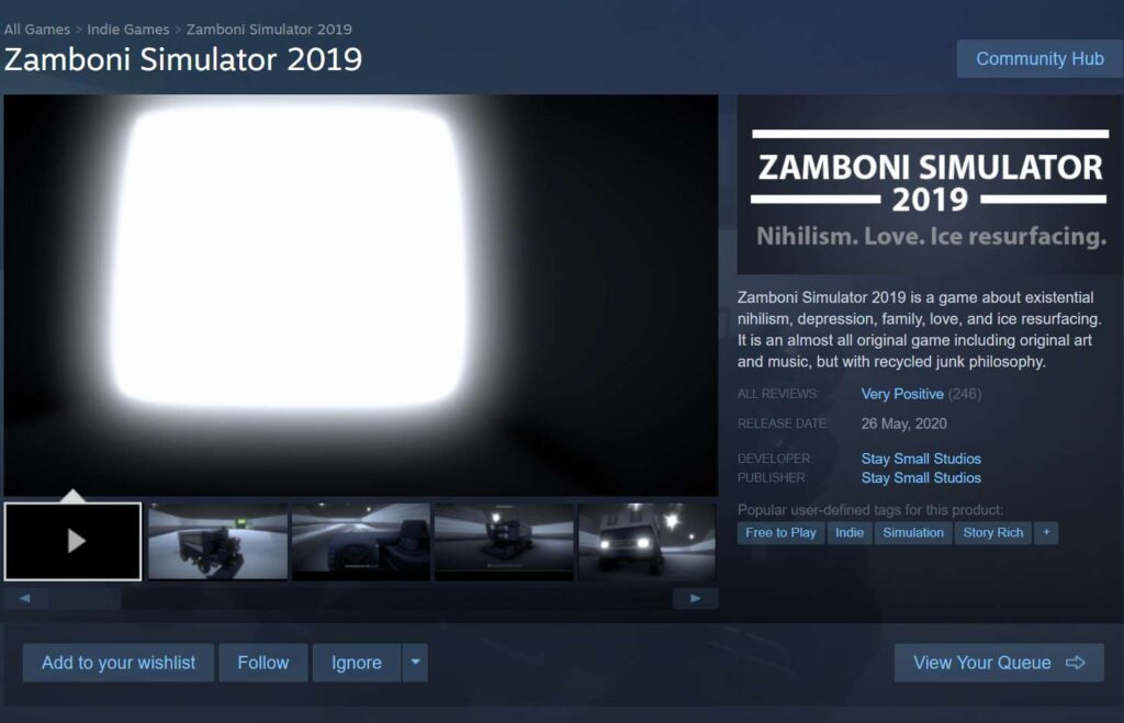 so i’m always thinking about an occupation or pastime that hasn’t got a “sim” version. today I thought about the Zamboni ice-resurfacing machine… quick check on steam show it exists.