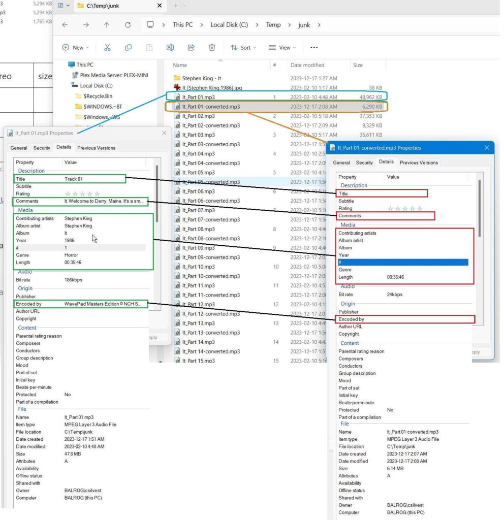 picking a random file, we can see it’s recorded as 96kbps, 30:06s 21216kb. it sounds wonderful