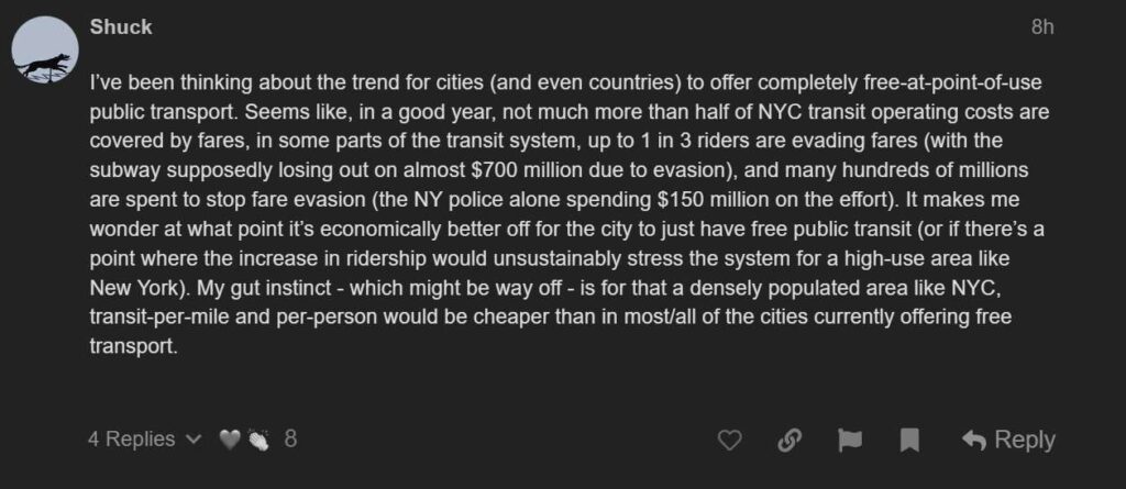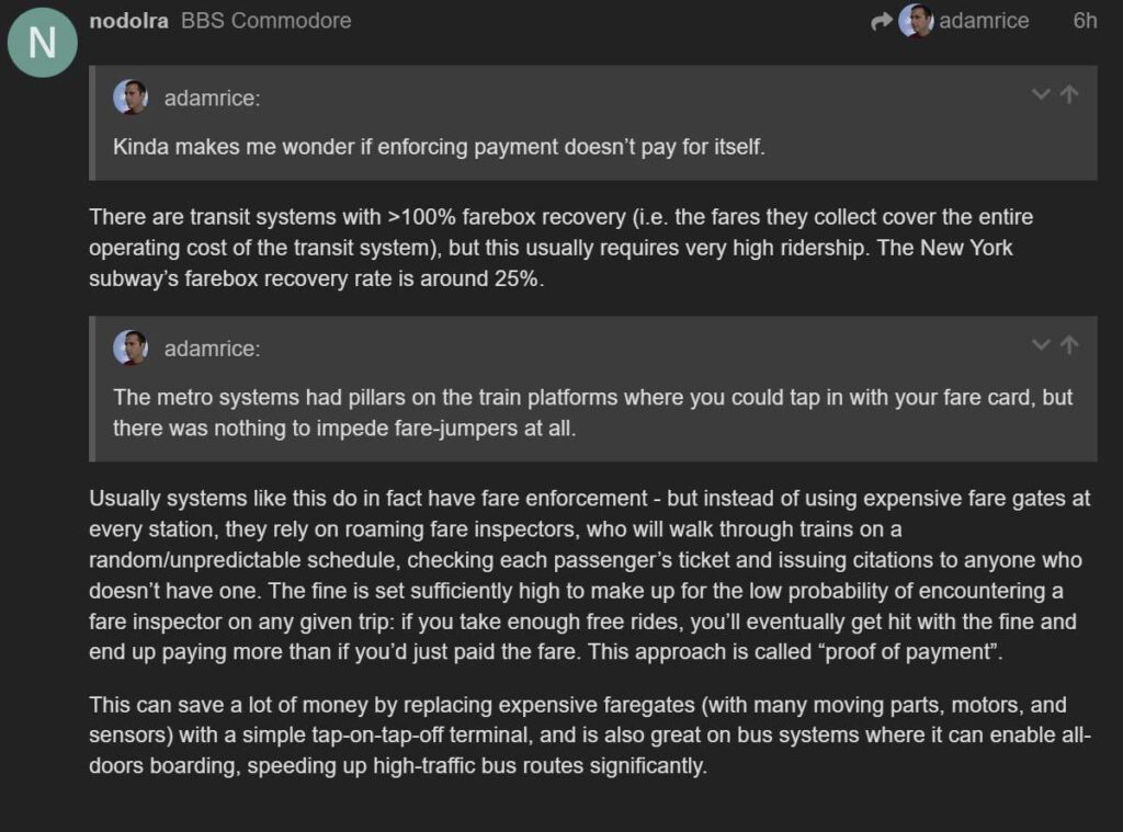 these snip taken while reading an excellent thread on BoingBoing BBS on if/how can a transit systrem operate with no fares?