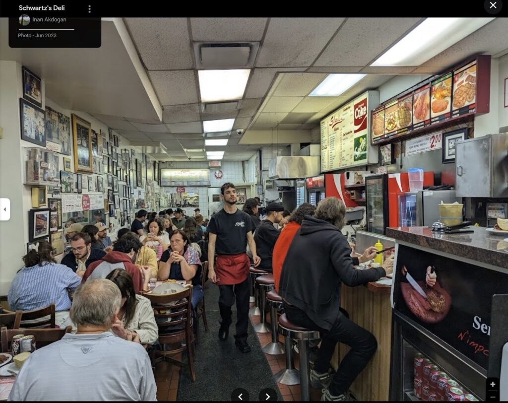 Ben’s was much larger than Schwartz’s. Easily 2x the counter space and ~20 4-tops, maybe more: