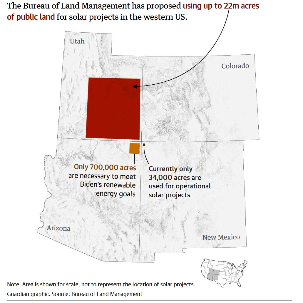 The Bureau of Land Management proposed using 22m acres of public land for solar projects – roughly the size of Maine, or an area larger than Scotland