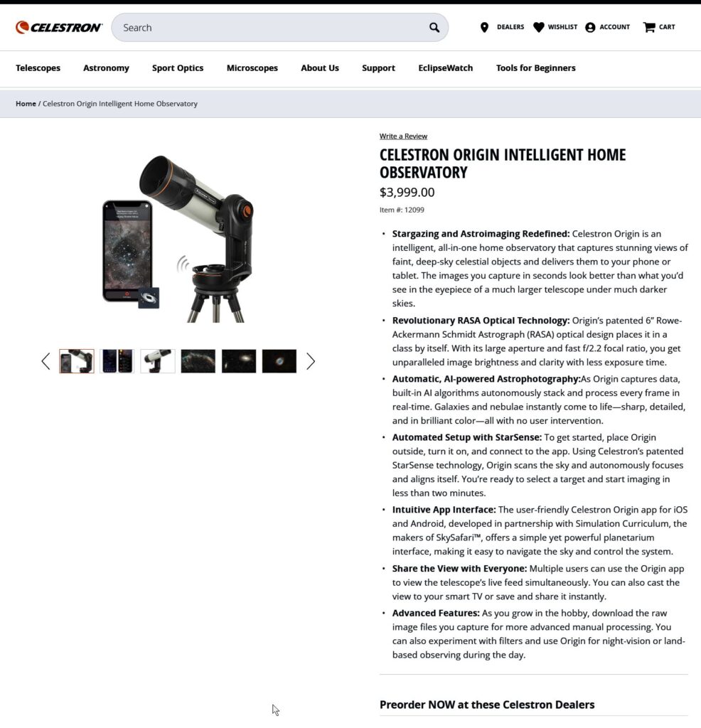 OK, this is intested using my voice input indeed directly into a blog posting about robotic telescopes. So about a year ago I started seeing telescopes that seemed to be like they have no eyepiece on them at the bottom end of the telescope. So they have 6 or 7 inch, 5 or 6 inch lens with a focal length of maybe two hundred and fifty millimeters Look at me, mixing my units here. So 50 to sixty millimeters. Two hundred fifty millimeters focal length focal length or down. So an F5. I think F10 or. down to the F2 .5. Now there’s two distinct levels of this. There’s Celestron has one. It’s four grand. So it’s no 6 grand the Canadian much time to get the door. There’s another company. If I go on Terry telescopes that has the another brand and it’s in the Florida $7000. and $8000. So very expensive telescopes and then suddenly there’s this to what I’ve been seeing in a couple of different parameters. I mean is ZW Sears on my job. It’ll be done in the picture as well that. are substantial. It’s mainly like 695. I think it says so say some $100. down to a 10th. But obviously you know these are thinking what are these? These are app control. So you have an app on your phone in your tablet and I’m hoping on the PC but we’re gonna look this is the the CD power CCD era to the gap digital camera at the bottom of the telescope. I’m not sure which version to look up the Reds because we reaching the number of pixels in the hot shed. So that’s a probably he’s in optics in front of it. Well that’s maybe the difference there’s a slower and one has you know half recent optics but the newer one the higher end times are. playing a call the optics get selected on this very well respected I mean anyhow now I envision having something like this that you have a habit or a house here for you guys very weird only have on the garage roof would be. the turtles get stick up and I don’t know if it needs to deal with turn but otherwise the big the big hope you pull back a lid cover the the roof and then you’ve got AA spell foot written. I look it up. I mean if you see in the warm recovery your home to part of the PC in front of your tablet between your astronomer. also is another thing a little bit is like the the app. So the software is able to take. time like time lapses at it very, very finely because it is a very high route and can adjust the images I maybe even to do like quick seating much as you can be pretty amazing. But then are the real power. because stuff is done that you know real tough stuff. So why does it invalidate the smoke? anyhow interesting at 700 bucks to maybe not keep further about 7000 bucks not so much.