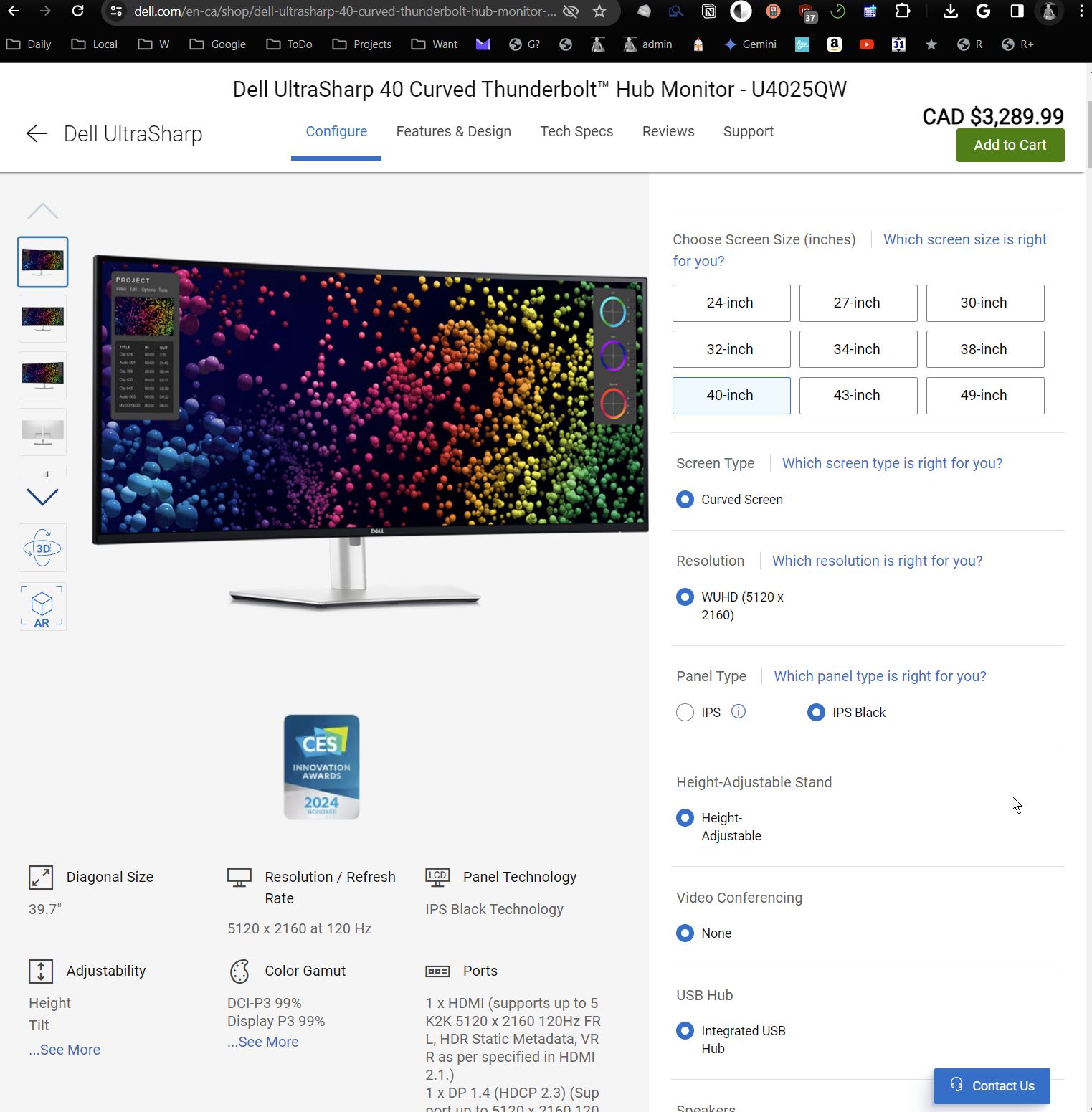 this one looks good: Dell UltraSharp 40 Curved Thunderbolt™ Hub Monitor – U4025QW