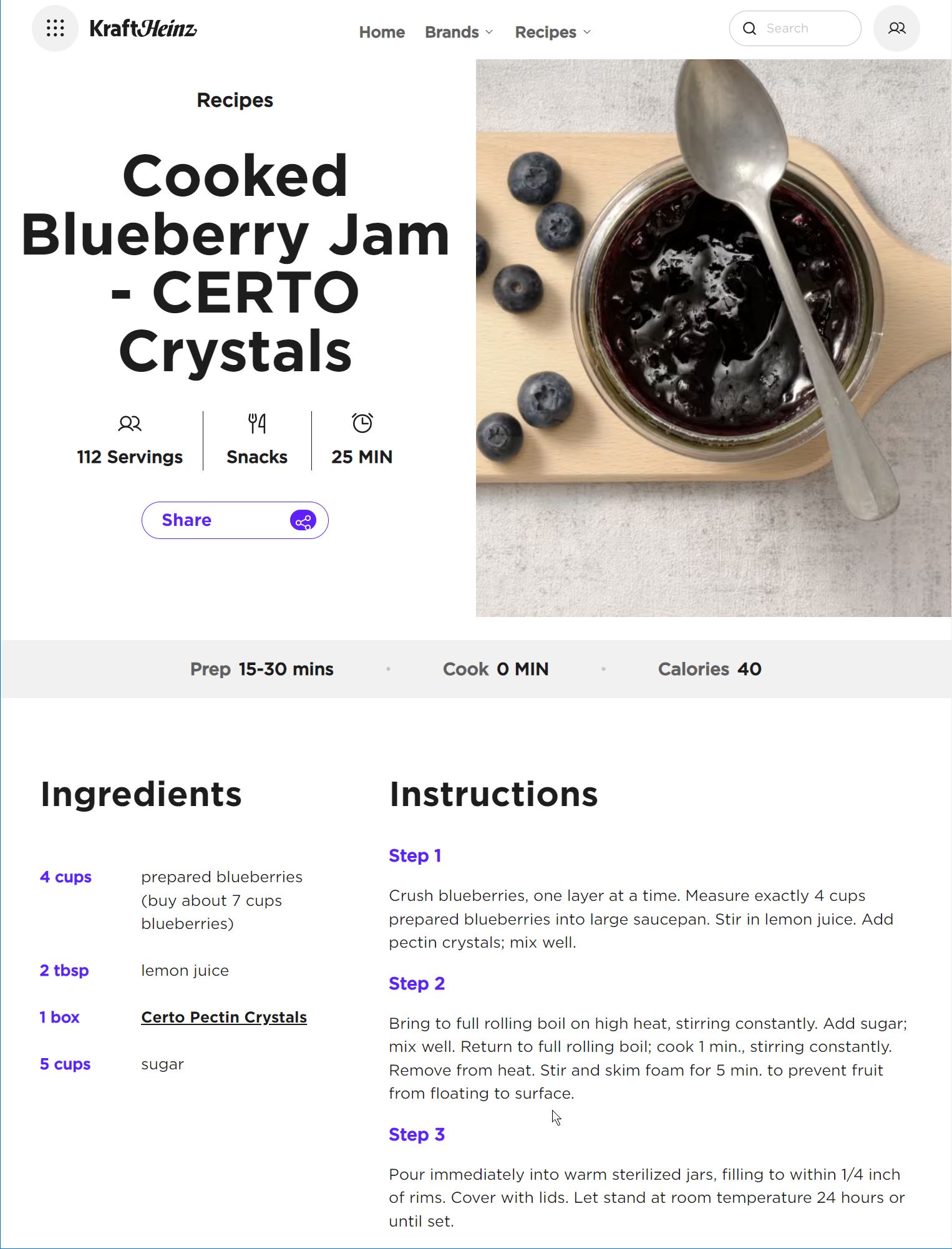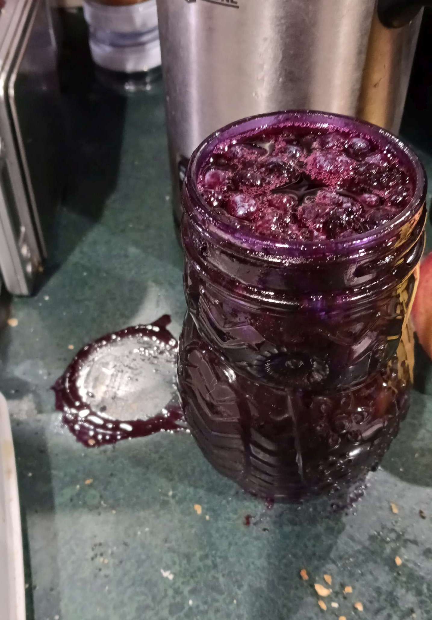 2024-03-12~ – Joan made a batch using ~4 cups of the Farmboy blueberries, liquid Certo and regular sugar following Certo’s directions; very tasty. but not solidified, very liquid; fruit doesn’t seem well macerated, mostly whole blueberries. They seem to have floated to the top, with more of a jelly at the bottom.