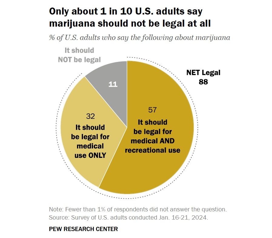 Source: Pew Poll Finds 88% of US Adults Support Legalizing Medical and/or Recreational Marijuana