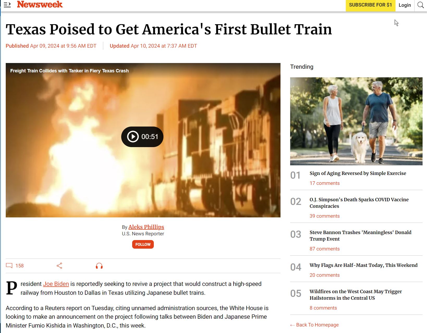 kinda amusing that the video at the top of the article, at least at the time I wrote this, was of a train collision complete with fiery graphics. Subtle influence, no?: