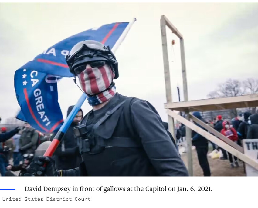 TOPSHOT – A noose is seen on makeshift gallows as supporters of US President Donald Trump gather on the West side of the US Capitol in Washington DC on January 6, 2021. – Donald Trump’s supporters stormed a session of Congress held today, January 6, to certify Joe Biden’s election win, triggering unprecedented chaos and violence at the heart of American democracy and accusations the president was attempting a coup. (Photo by Andrew CABALLERO-REYNOLDS / AFP) (Photo by ANDREW CABALLERO-REYNOLDS/AFP via Getty Images)