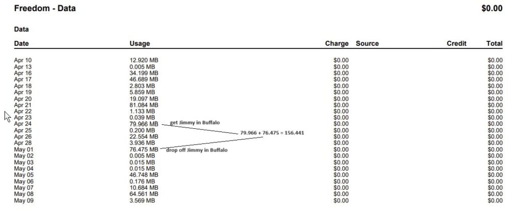 so if 1 phone does 178MB in ~3 hours in usa (60MB / hr), very light usage (looked up a few things on maps, checked emails, etc.), if i extrapolate to 18 hours / day x 6 days = 108 hours x 60MB / hr =6480MB x 0.03$ / hour = C$195 for 1 phone for the trip. Probs 2x that if we do both phones (or if tethered either way), so ~400$.