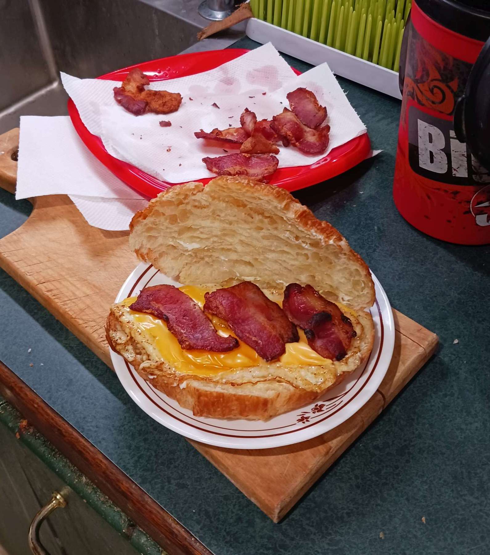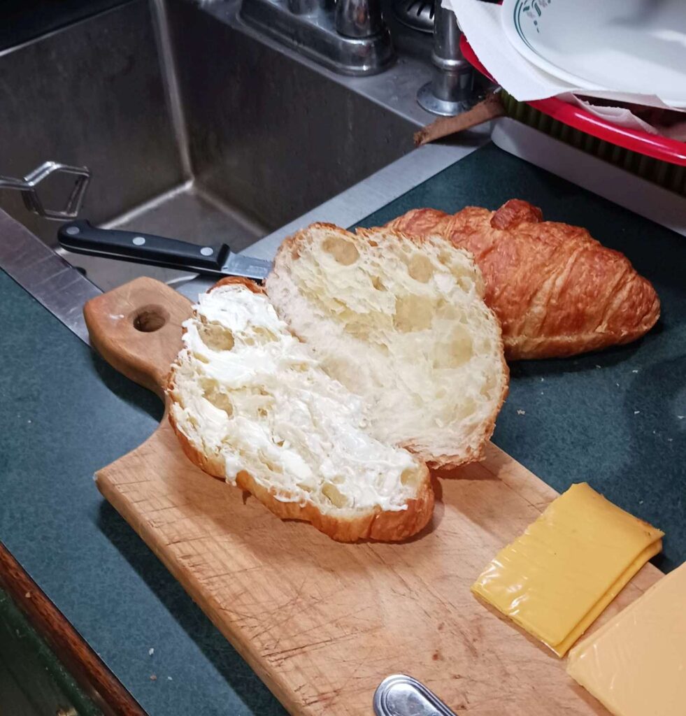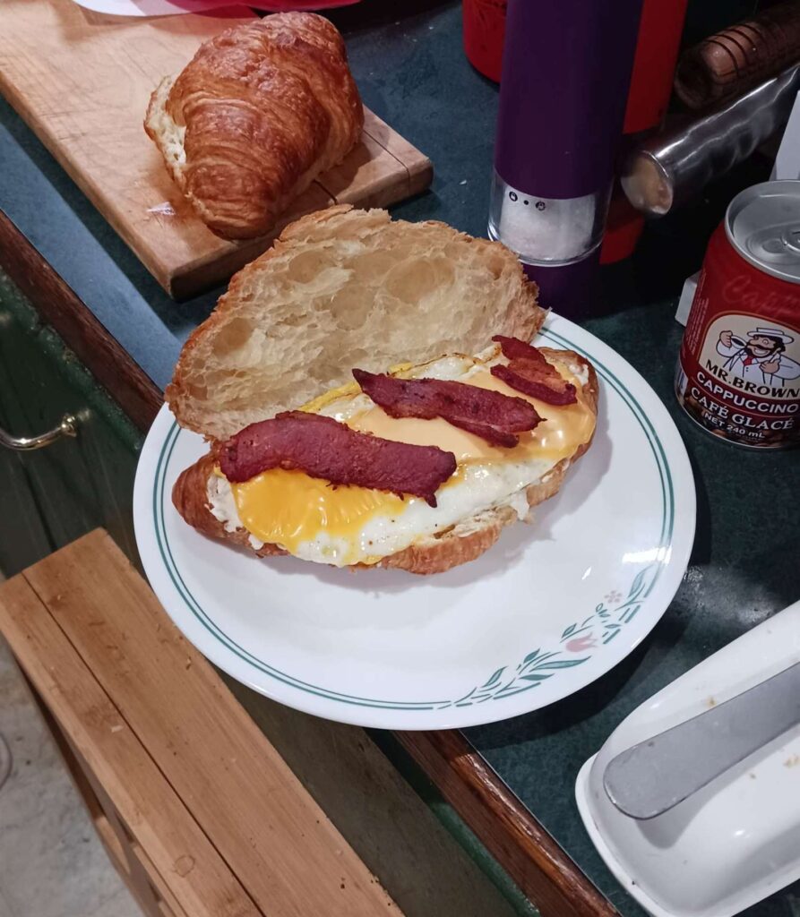 we have too many croissants. can’t waste them! so i make the classic egg, bacon, cheese (Velveeta AND no-name) on a croissant instead of the usual English muffin. note these are likely not in order due to how wp uploader handles multi-file uploads. i did re-organize them; took ~10 mins. wp needs a better file uploader!!! first use of the “featured image” that highlights one of the pics in the gallery below. seems too big though.