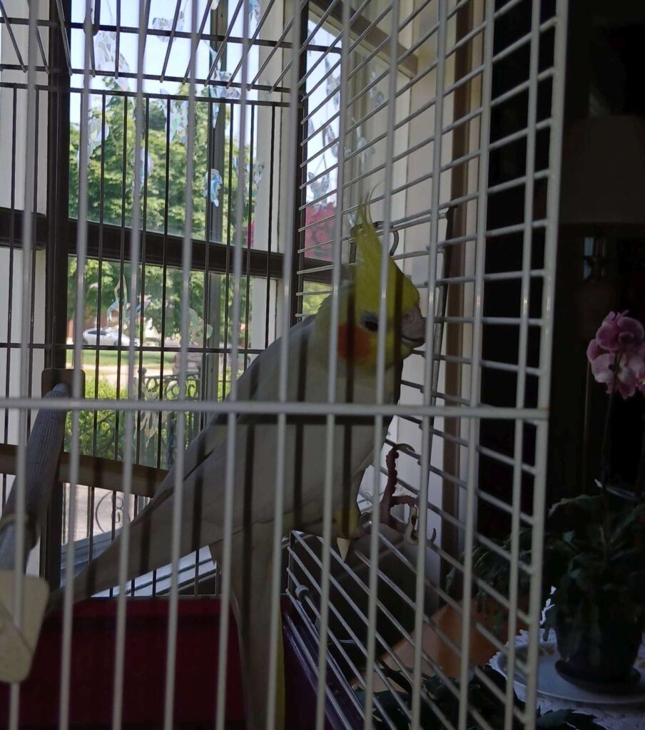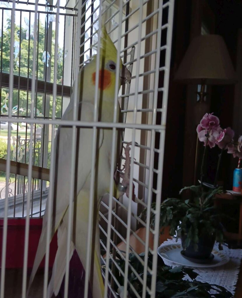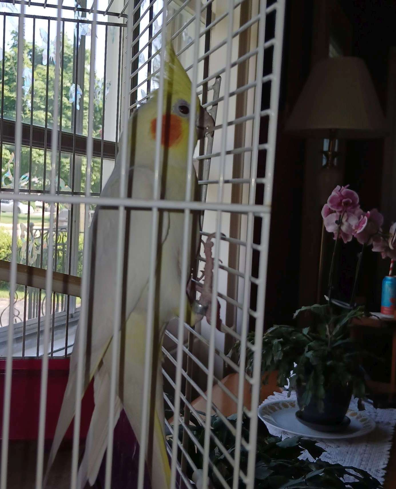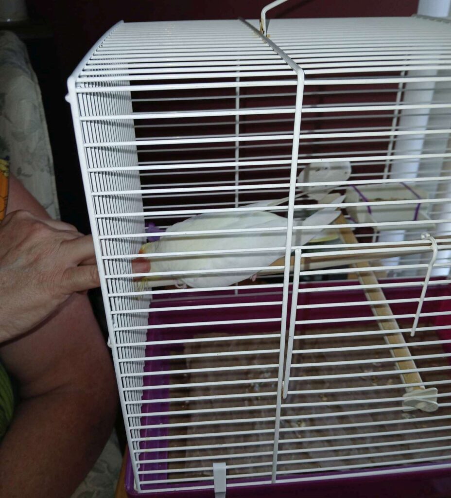 Mom was the only one short enough to get the blanket spread out to protect the bird cage on the way home.