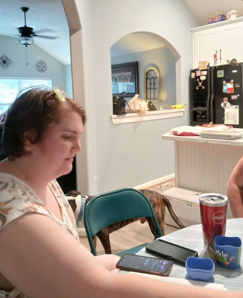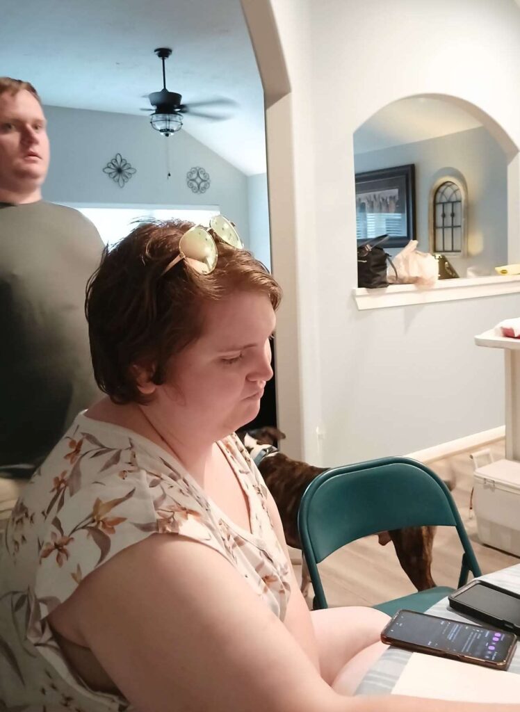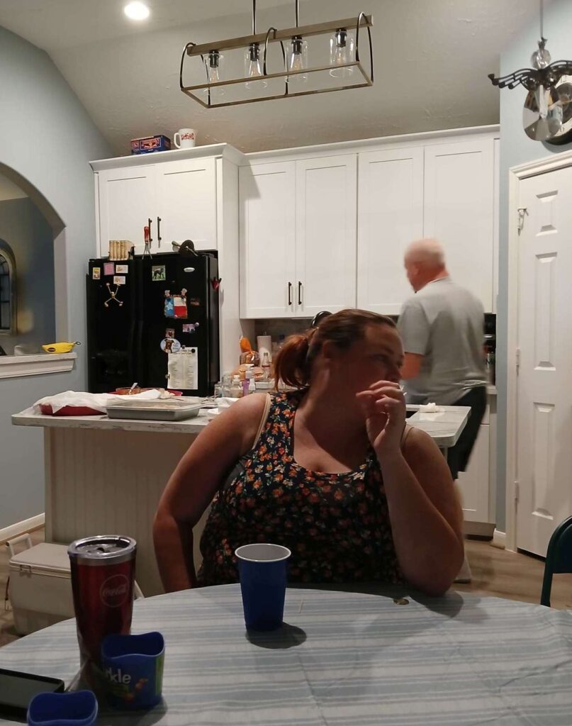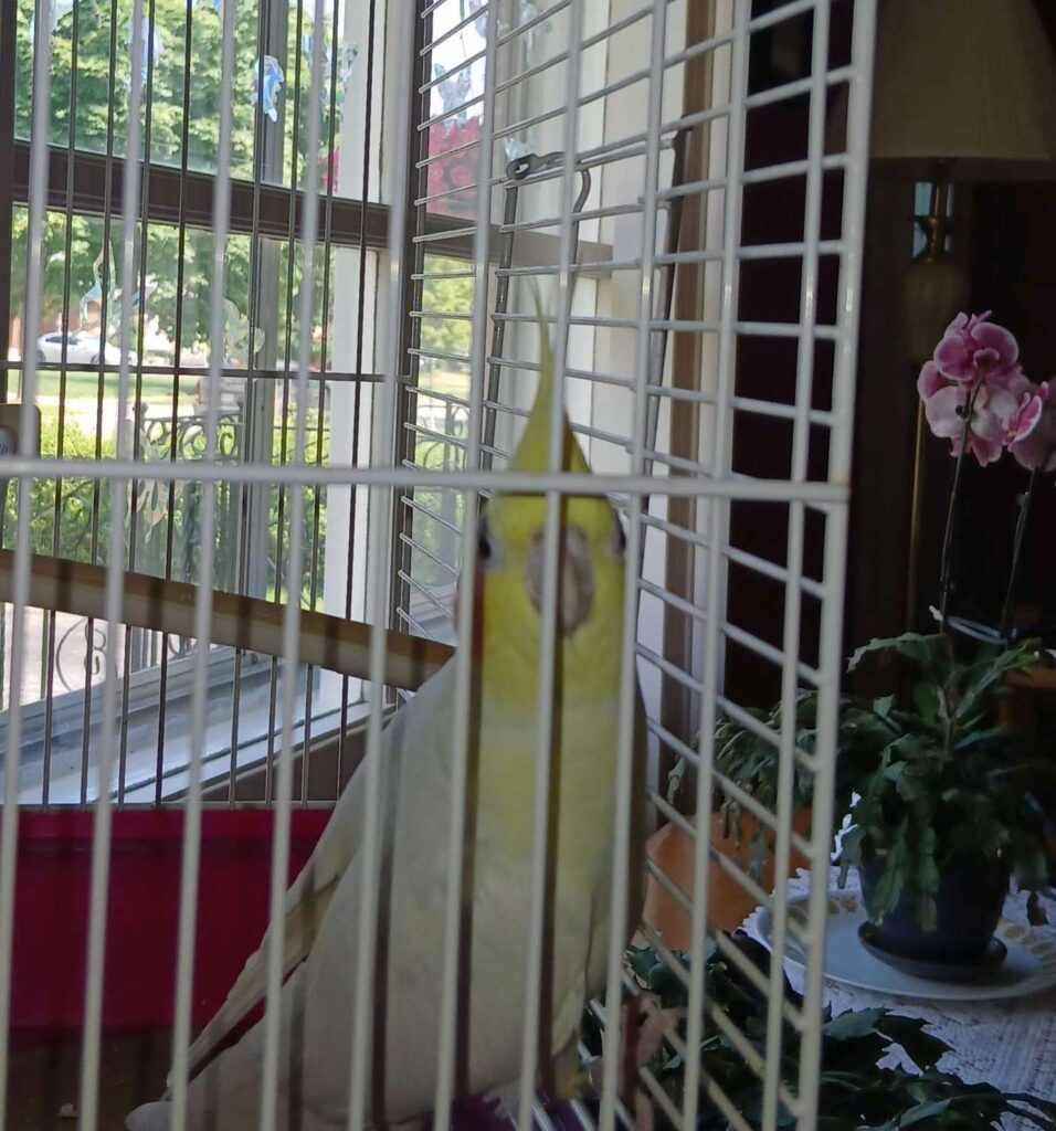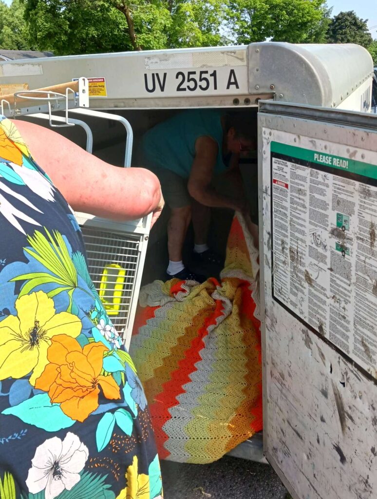 Mom was the only one short enough to get the blanket spread out to protect the bird cage on the way home.