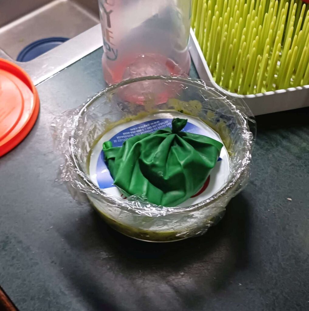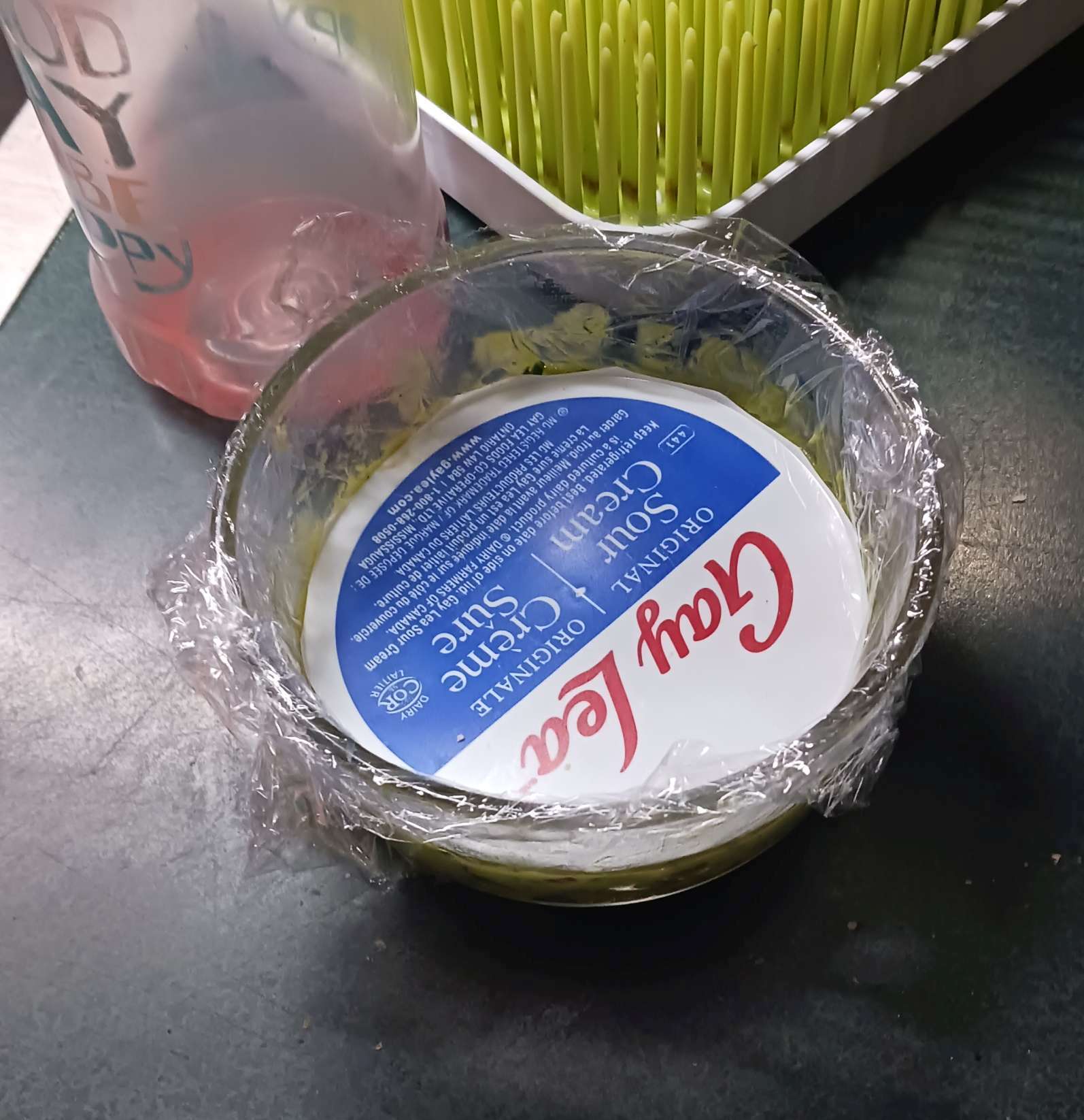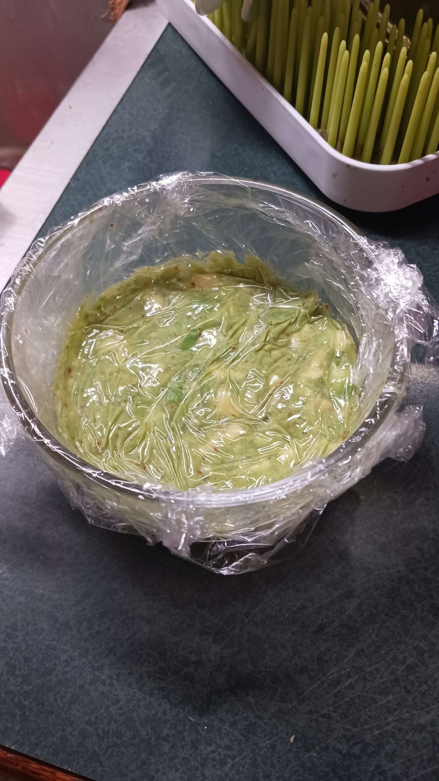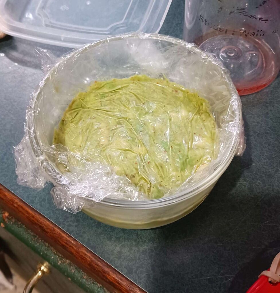 — 2024-08-15 – Thursday – the full defense against guacamole browning; 2 day old, just a little discouloring on top