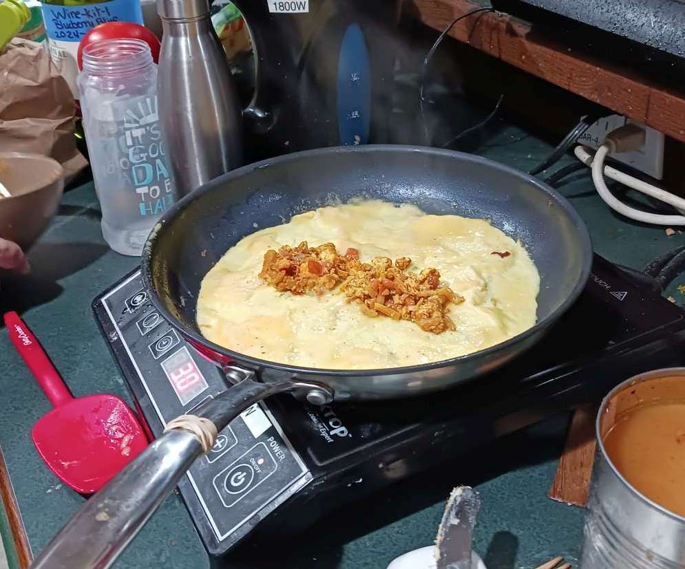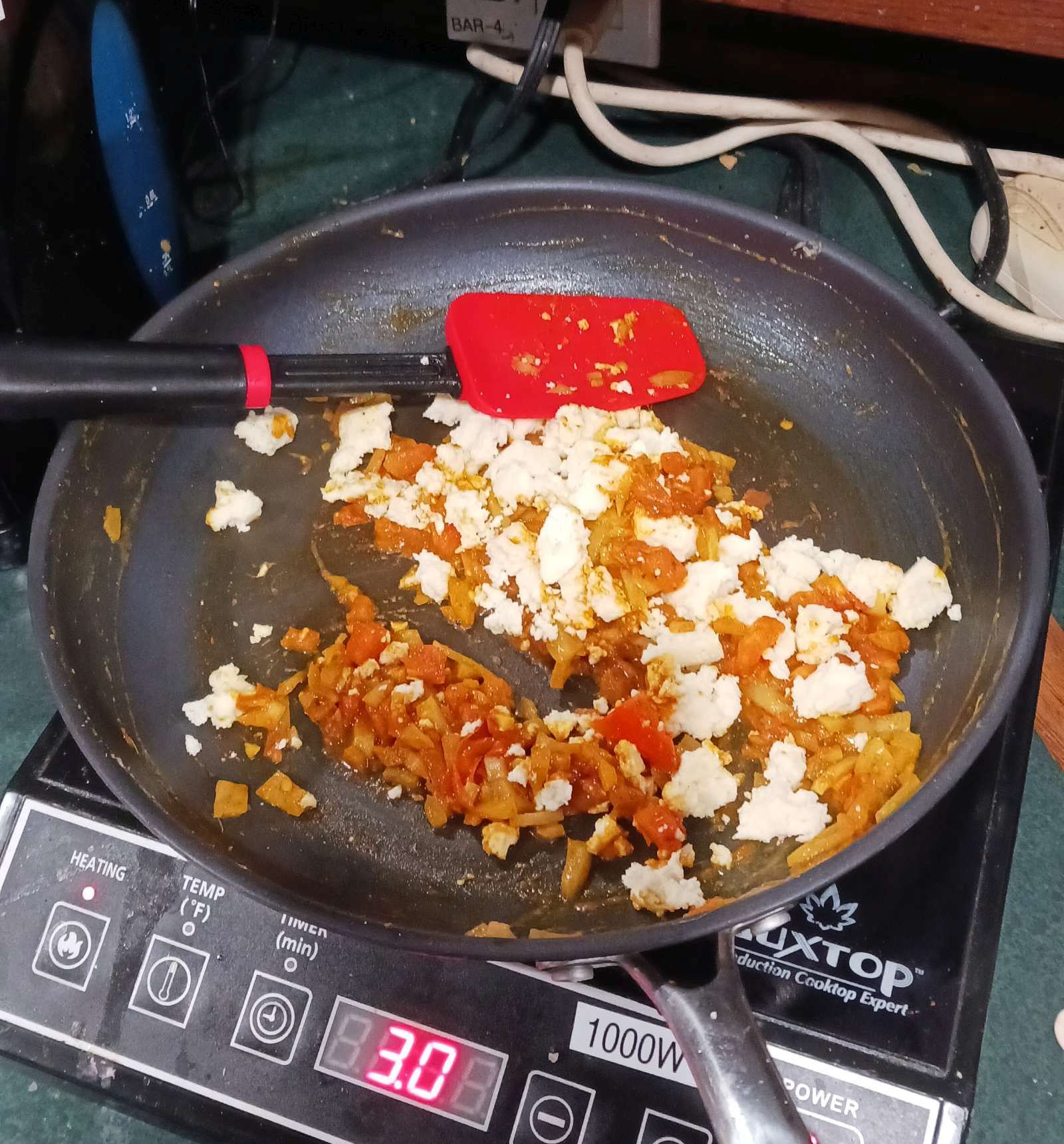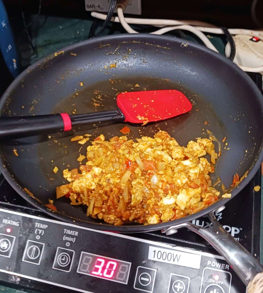 wasn’t bad. but need more spice; try 2x of recipe next time? and sadly, the texture of the Paneer Bhurji was very similar to the egg; I was hoping for more contrast. maybe next time try frying the paneer as larger cubes to give a more solid bite?