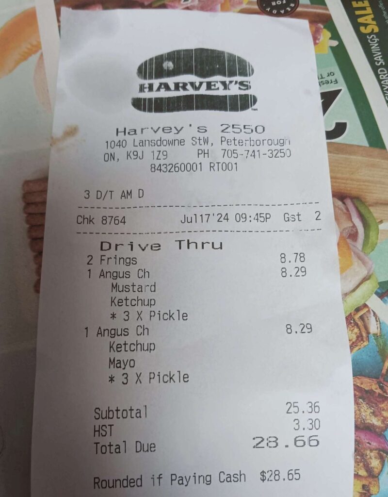 we typically get 2x Angus Cheeseburger + Frings as a combo. But if taking home, is the extra cost of the combo worth ghetting when we have drinks at home. whould also be interesting to do same check on other ff places. but we only like Harvey’s?
