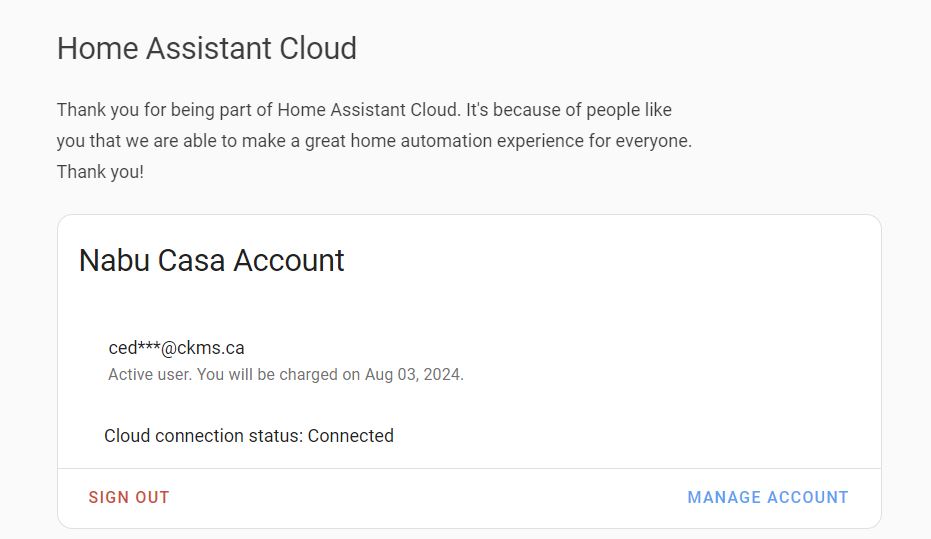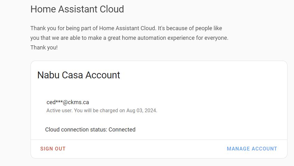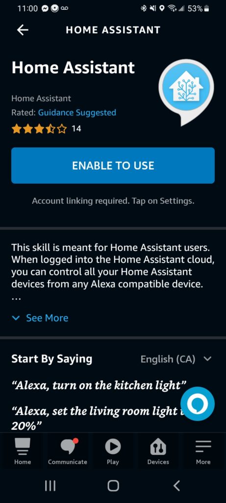 can’t enable the Alexa skill “Home Assistant” to let HA talk to Alexa. might need this to control the Amazon Basics lights I added to Muffins’ cage.