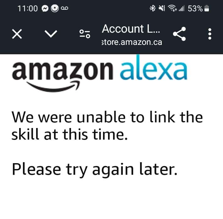 I am trying to enable the “Home Assistant” skill the Alexa app on my phone. After scanning the barcode with my phone, I get the link to the Alexa app, with the “Home Assistant” skill selected. I press the “ENABLE TO USE” button, then I get the message “We were unable to link the skill at this time. Please try again later.”: