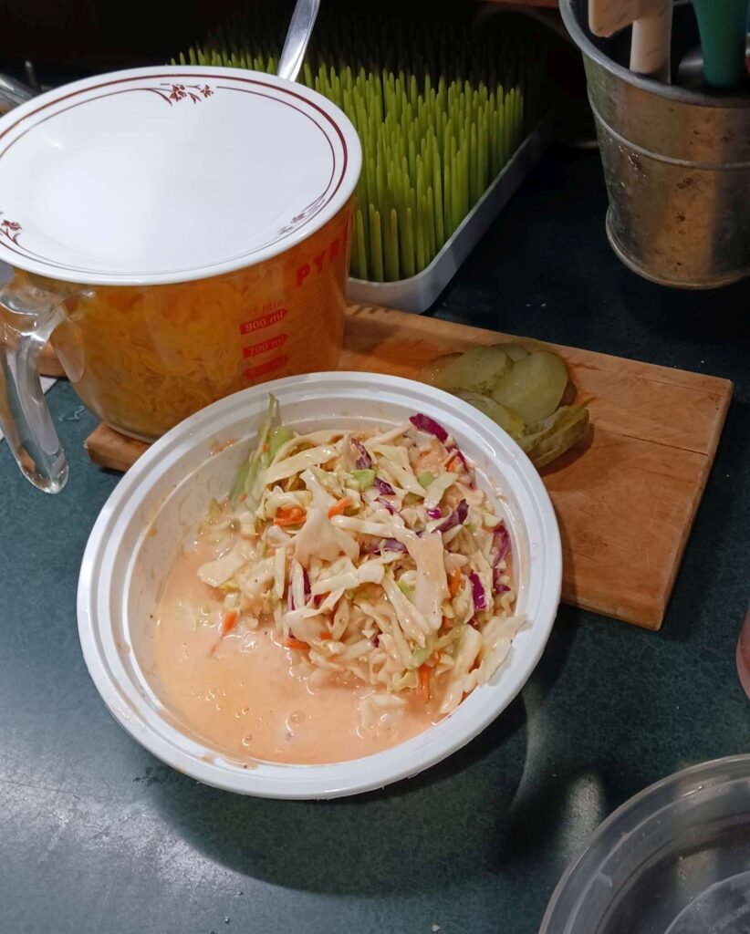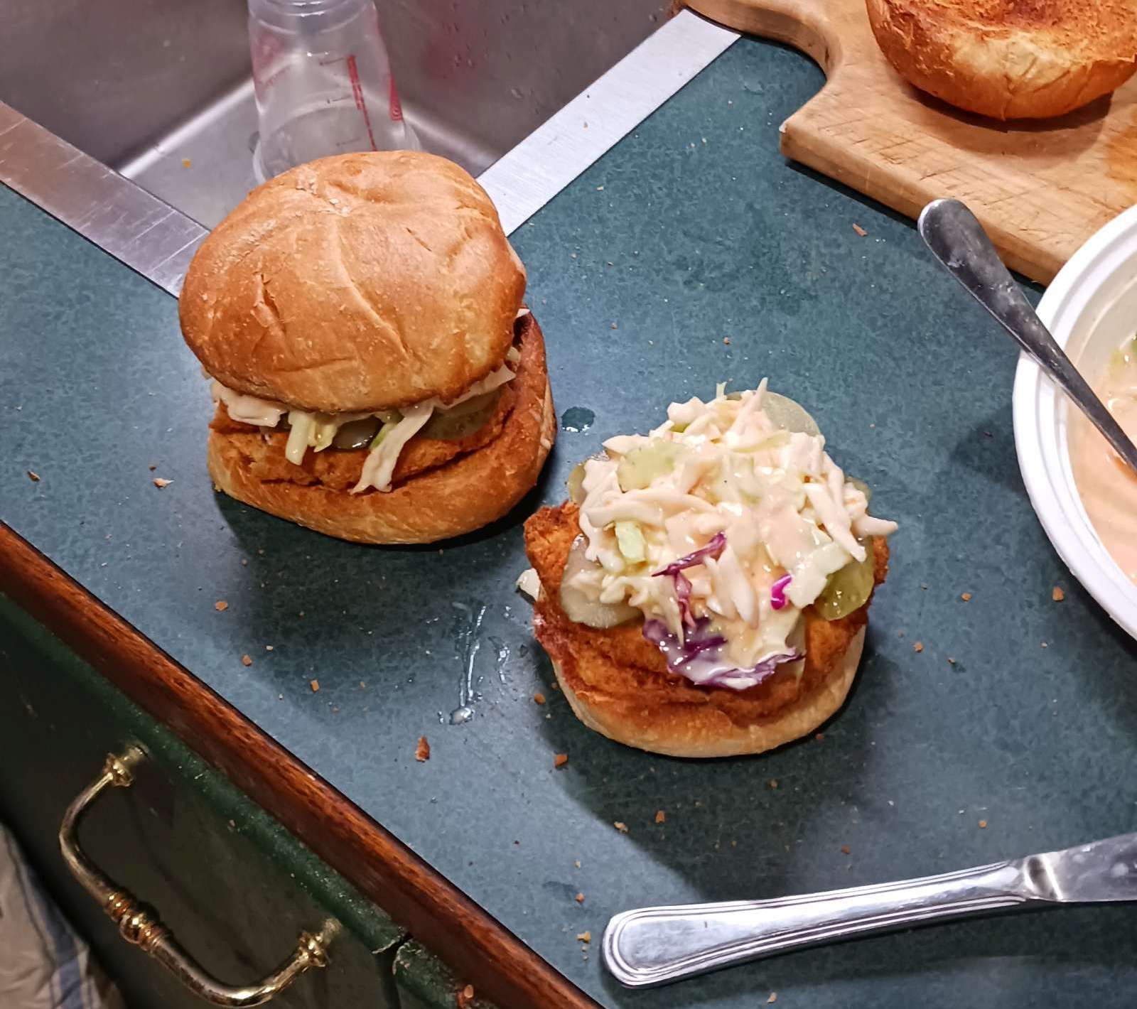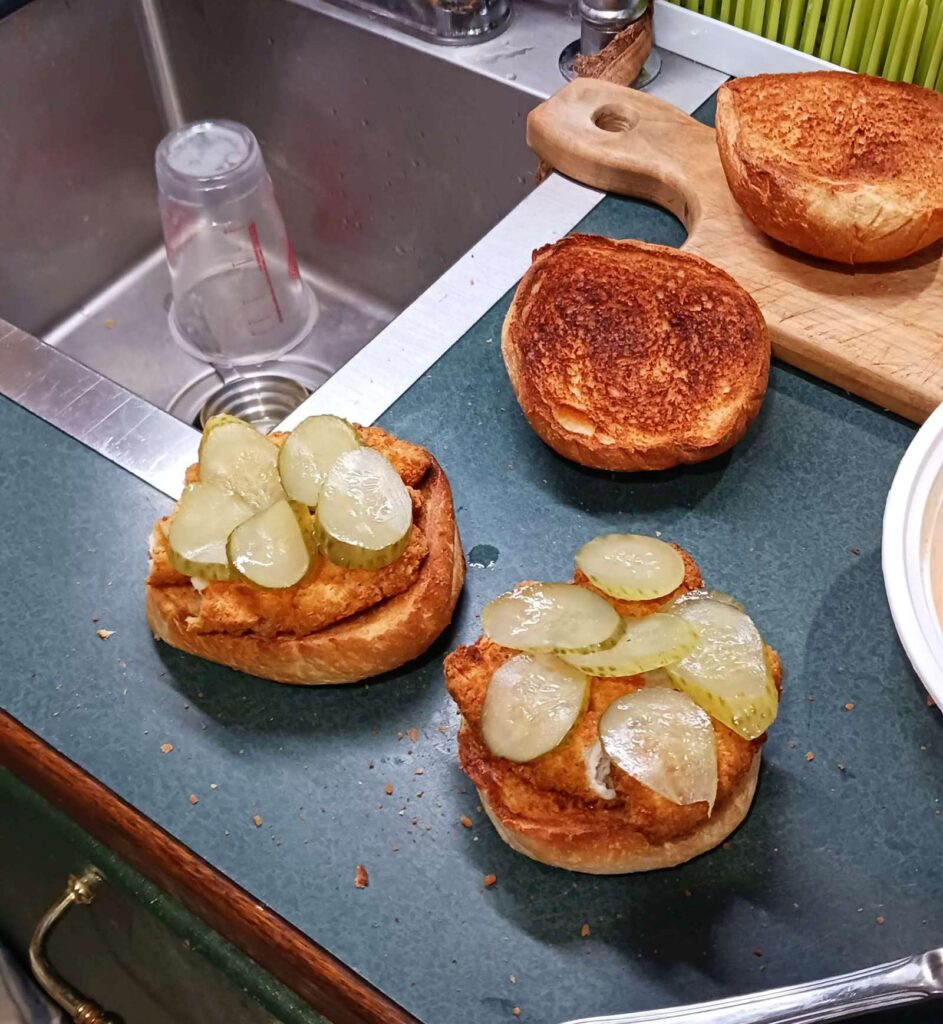 Posted in Article how i make spicy chicken coleslaw crunch sandwiches – 2024-07-31 2024-08-01 Leave a Comment on how i make spicy chicken coleslaw crunch sandwiches – 2024-07-31 yummy. coleslaw too runny. nicely spiced with ~1 tb Tabasco Siracha. toasted 2 mins too long. pickles worked very well. janes chicken strips, only needed 4 total.