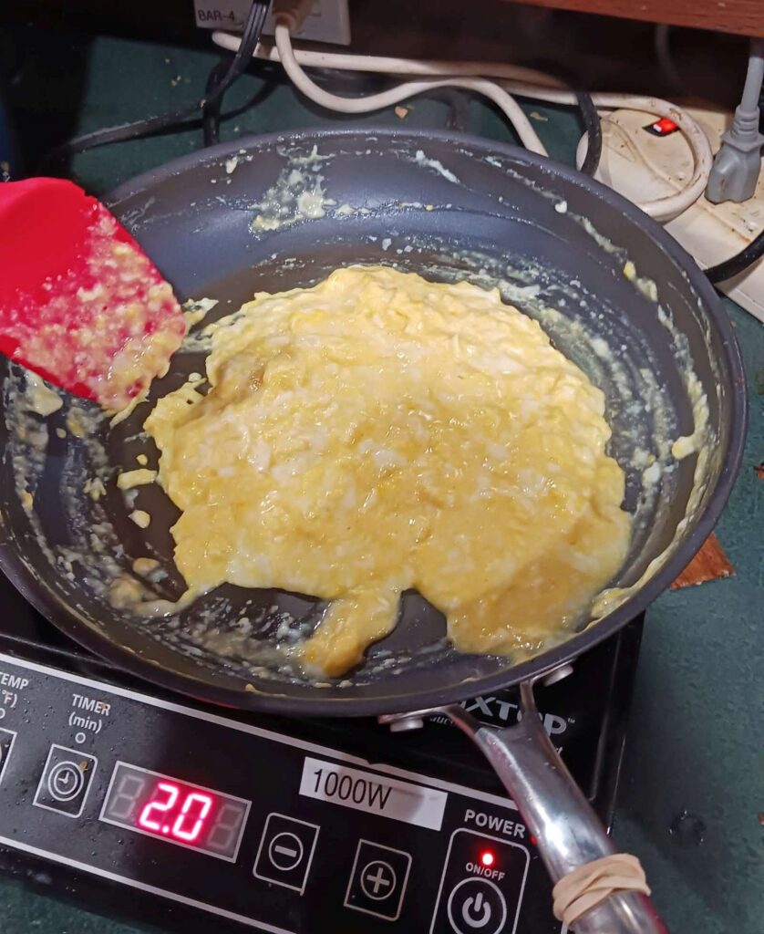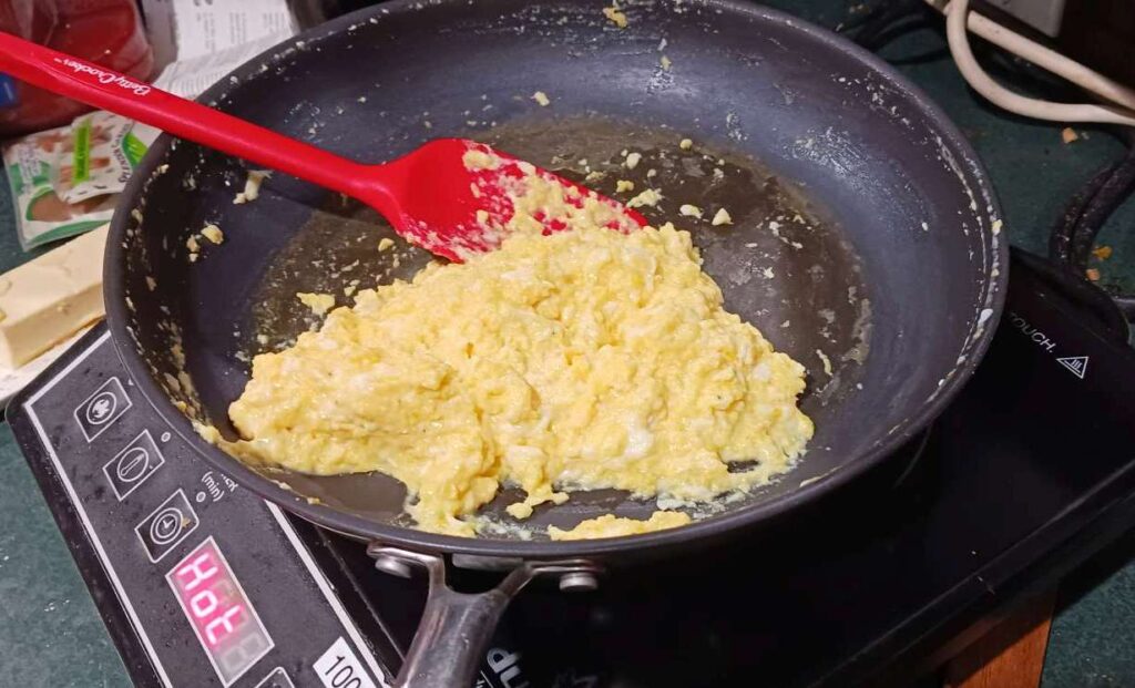 first attempt to make soft scrambled eggs (instead of the usually fully-cooked stuff ommellete i usually do). maybe if i can get these right i can proceed to try the similar french ommellete and then the very tricky japanses on that is spilt open over a pile of rice (omuyaki??)