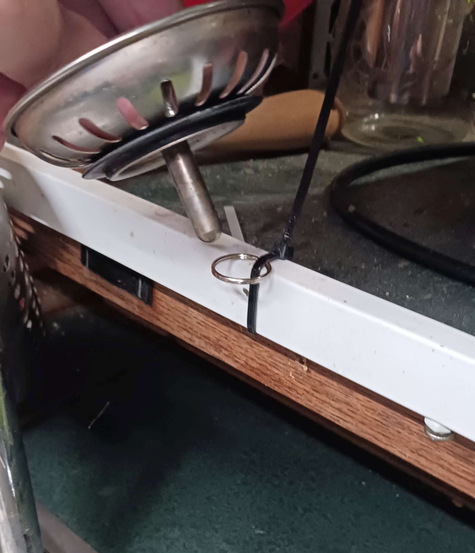 Posted in Article how i make a holder for bar sink drain plug 2024-08-02 Leave a Comment on how i make a holder for bar sink drain plug of course I wanted to use magnets. but drain plug is stainless steel, and only slightly ferrous/magnetic. so used a zip tie and a small binder rings thingy. split ring?