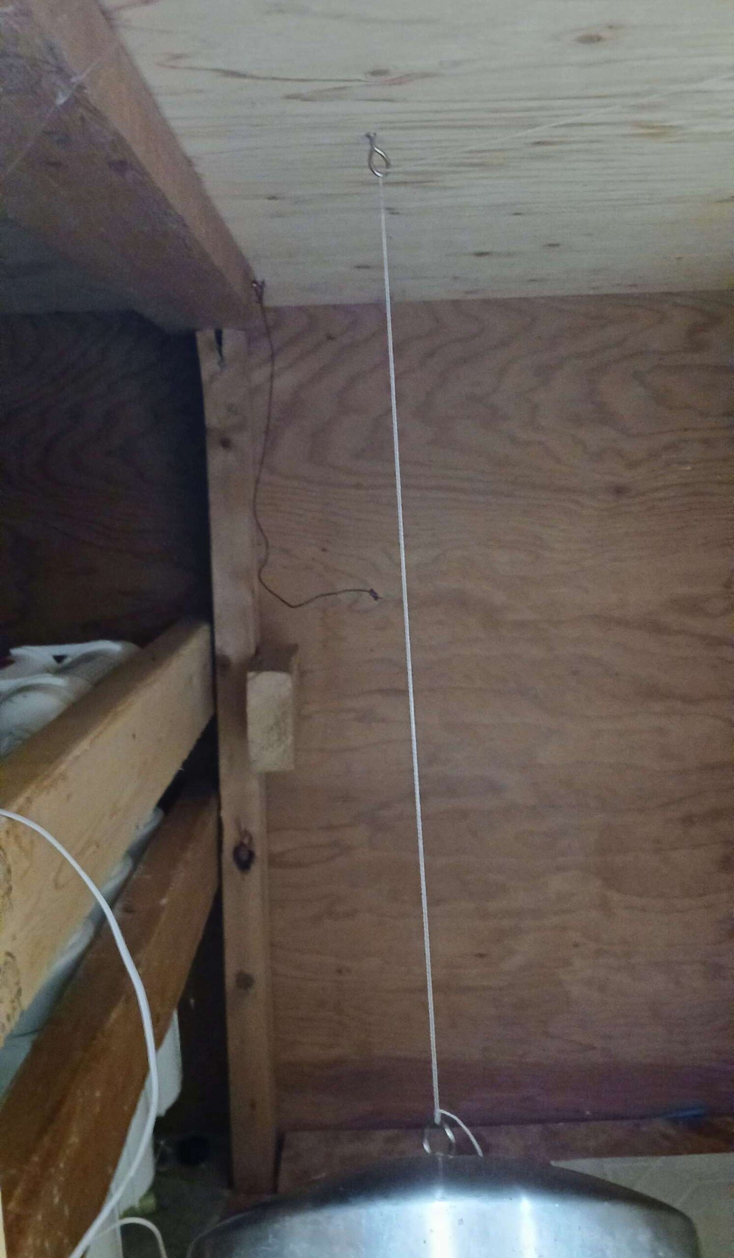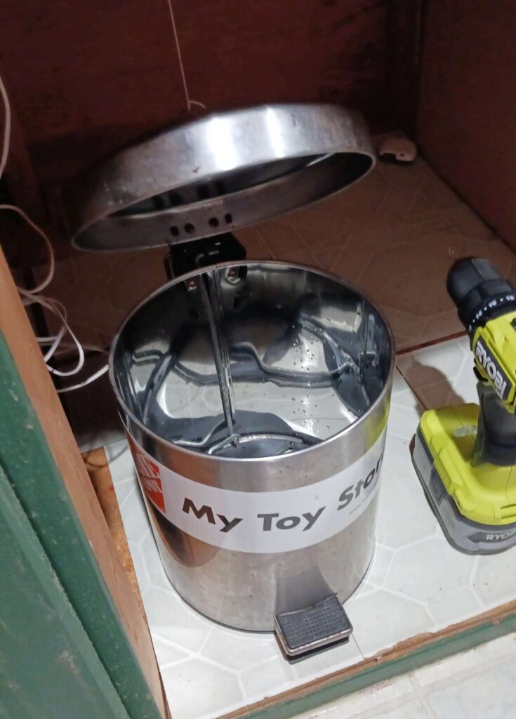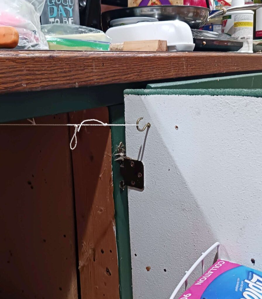 — 2024-08-02 – Friday – opening garbage cans is for fools! using string for now; if I ever find my roll of stainless steel wire I bought for some other project, I will replace.