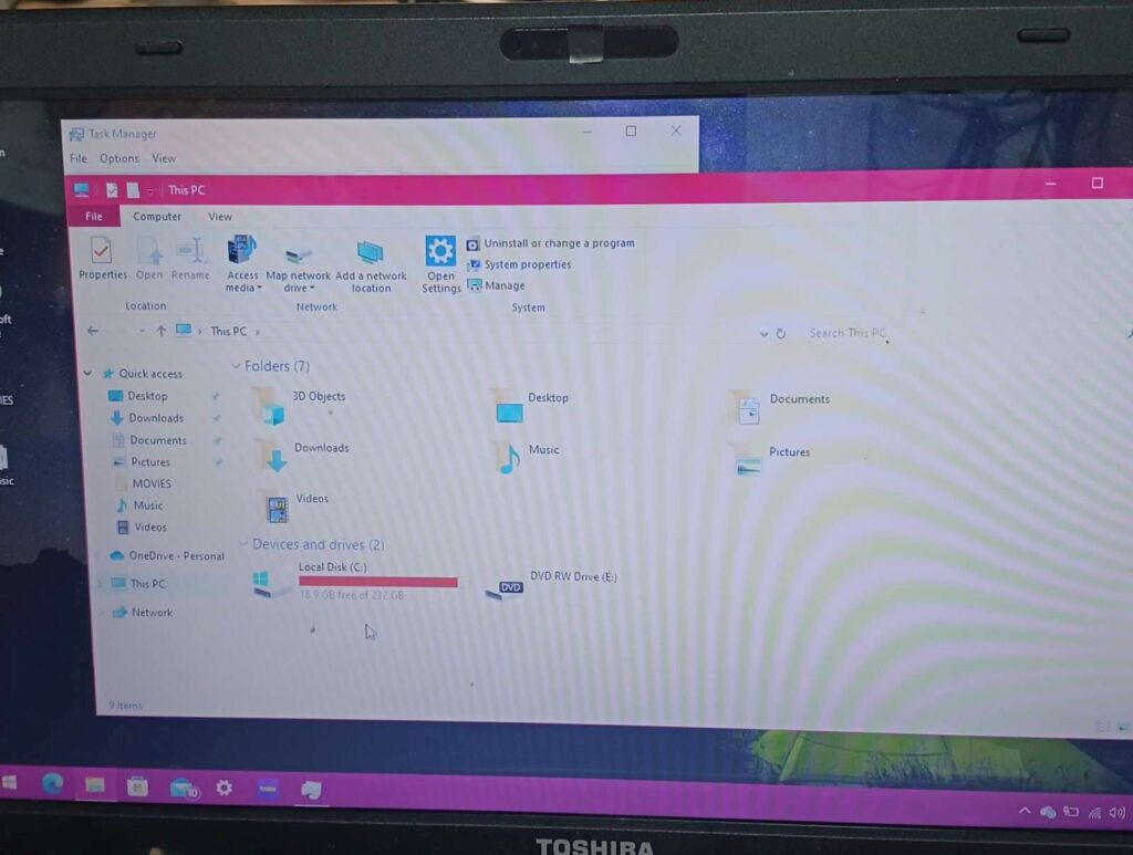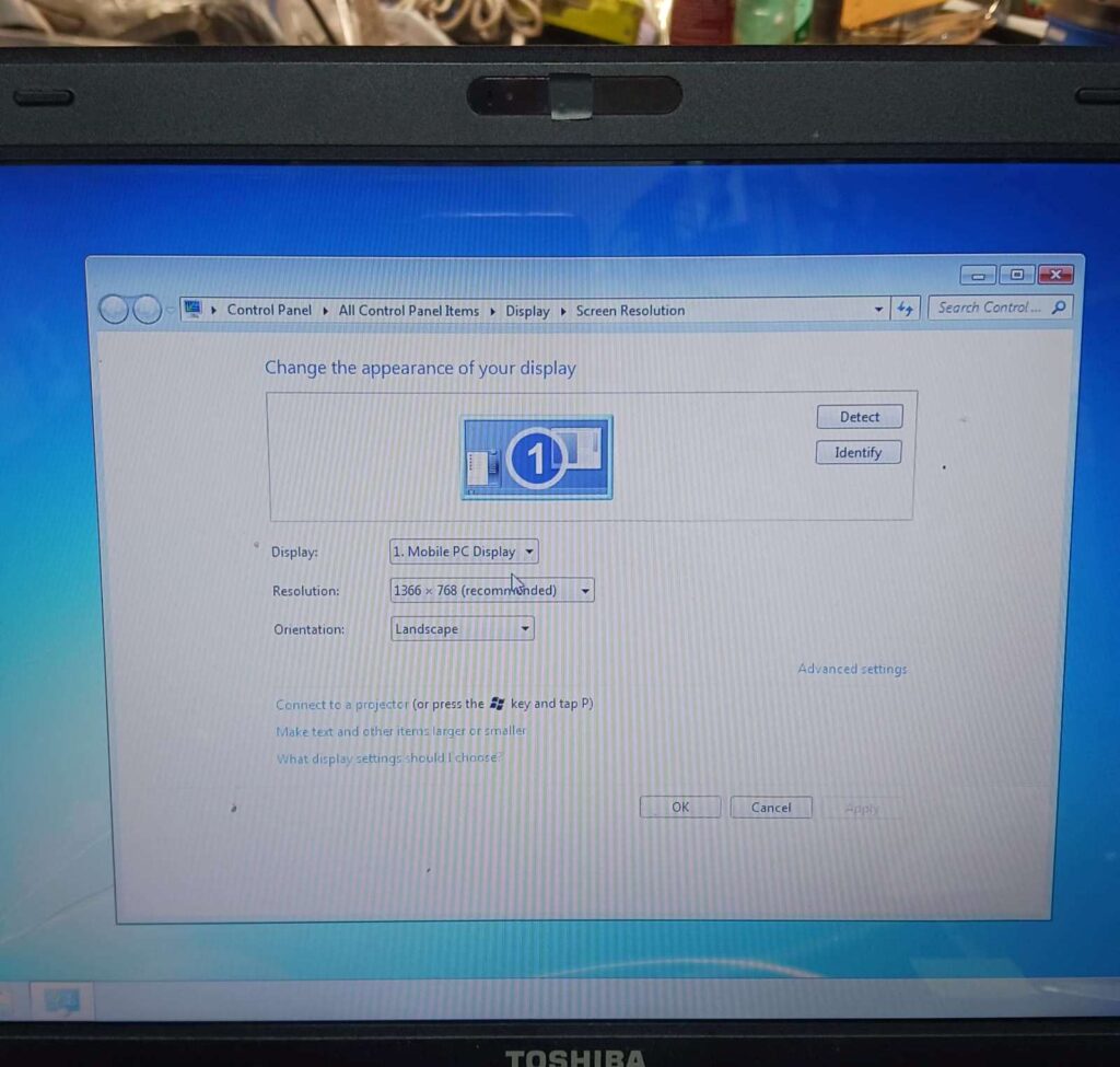 1. Video driver is generic Windows, so only 1024×768 (screen is 136×768), so doesn’t look right