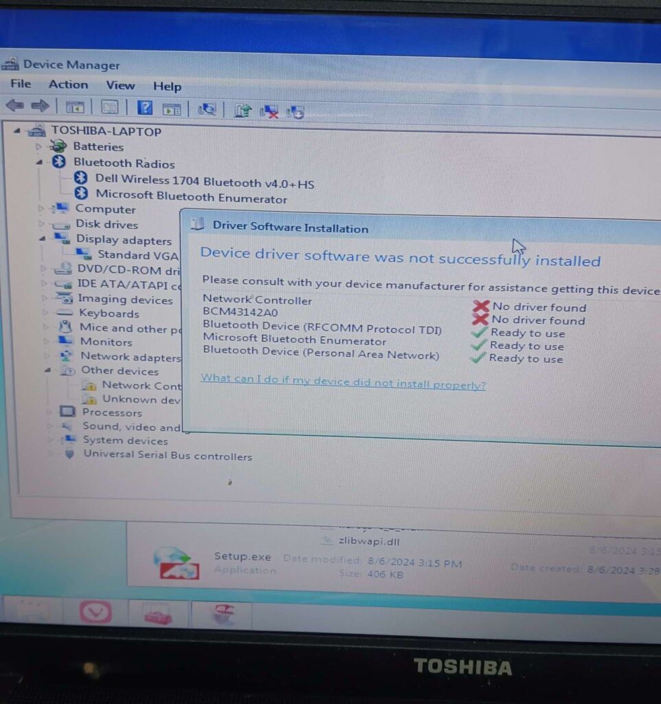 realtek? wifi? – install tc50081800a.exe – but doesn’t seem to install