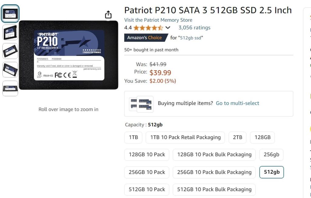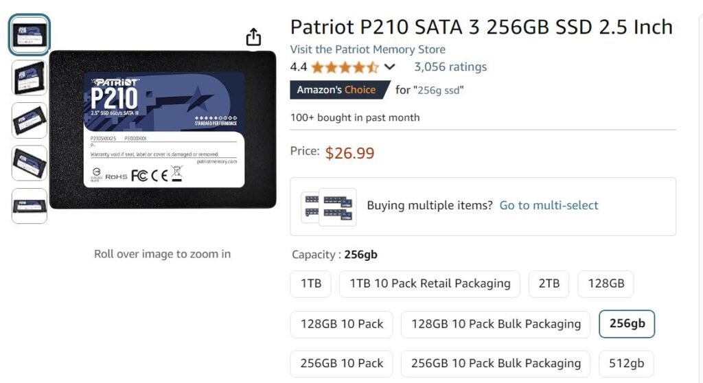 1. replace 256GB HDD with SSD (SSD = Solid State Drive, much faster than HDD); 256GB=$27, 512GB=$40 (+taxes)