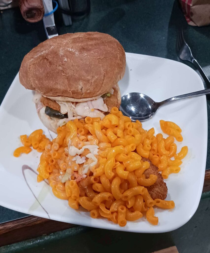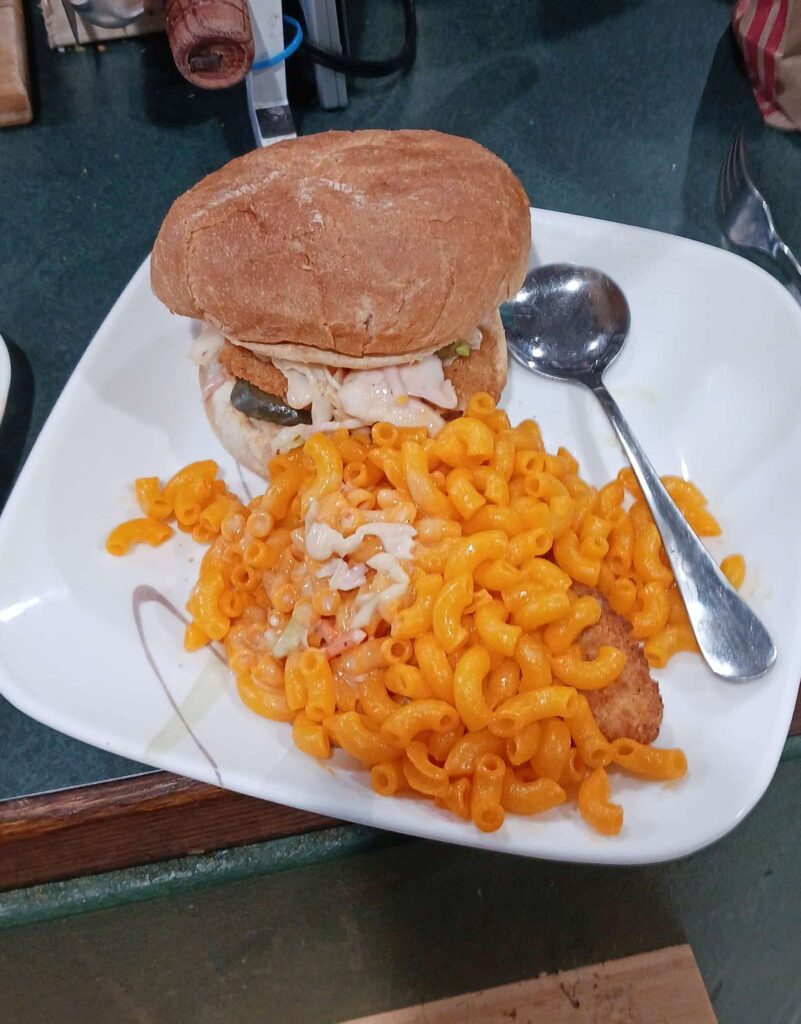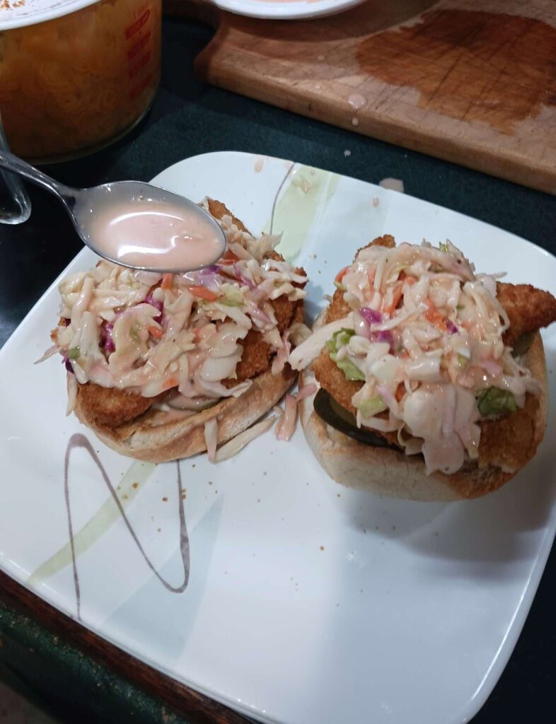 needs more hot sauce inthe slaw, seemed too hot by as it was, but once into the sandwich must less hot. try 2x of what i used here. which i forget.