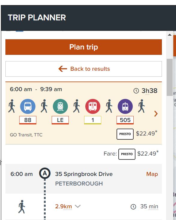 For next time, perhaps consider driving to Oshawa GO as the transit starting point.