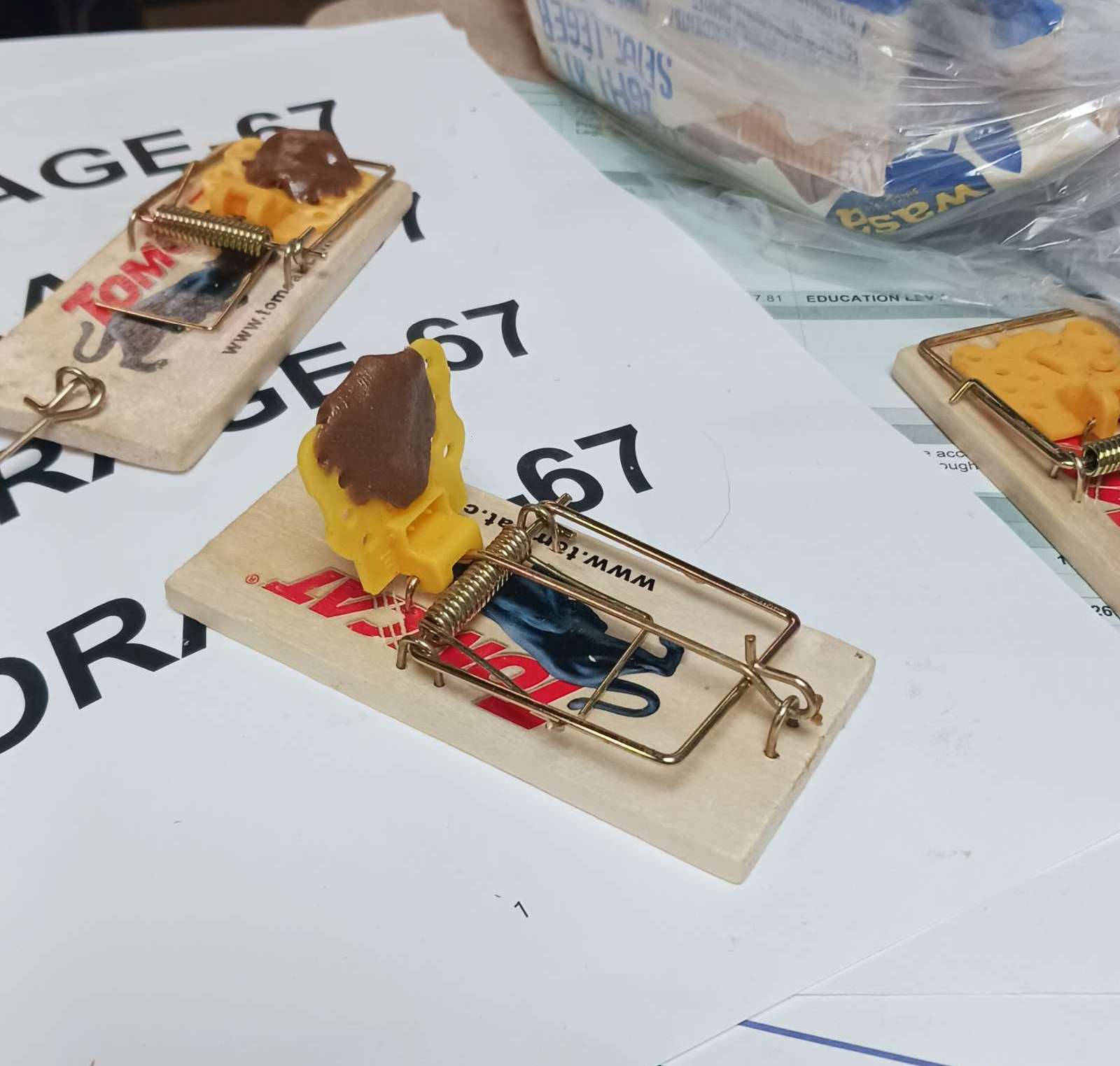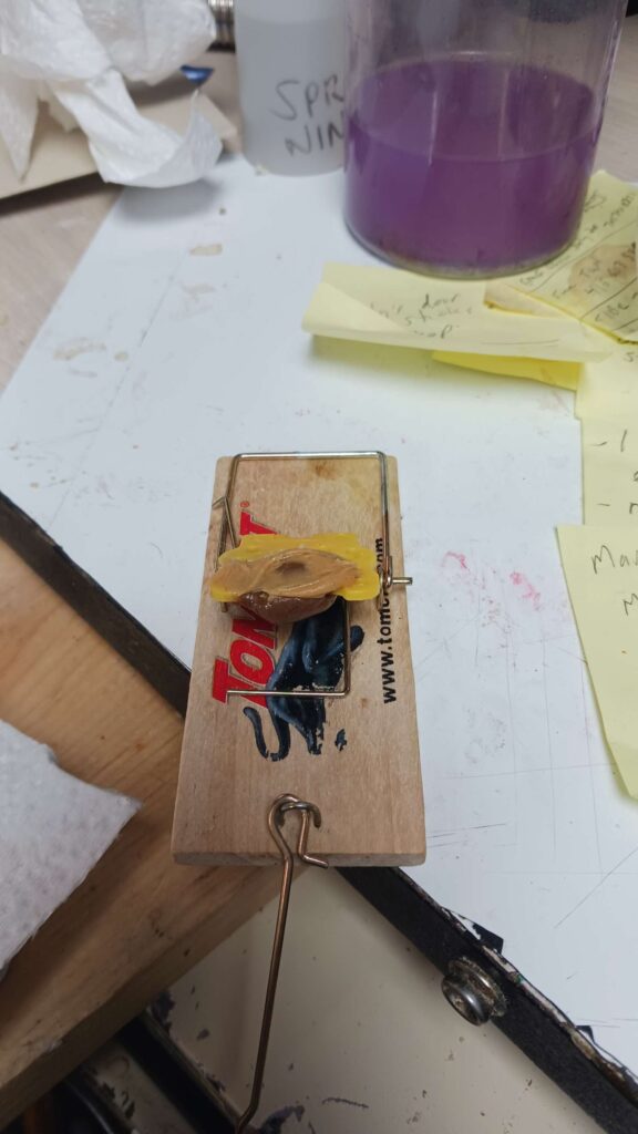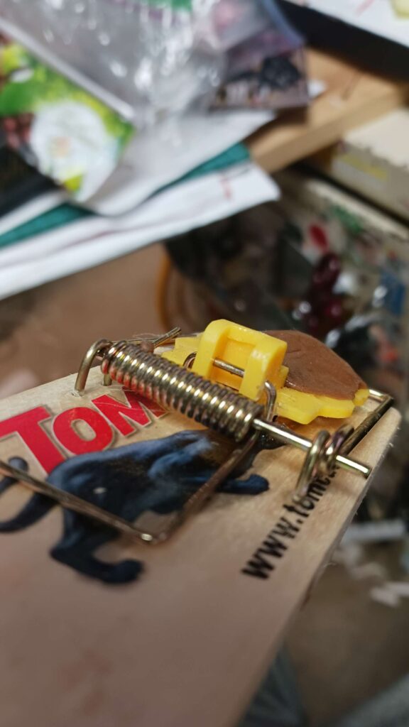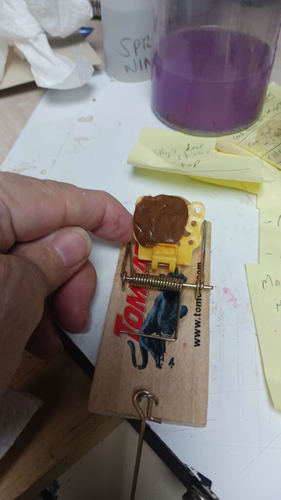 mouse war – add a bit of pb undersie of tripper with tootsie roll on it; this shouild attract them better after the tootsie rolls get stale