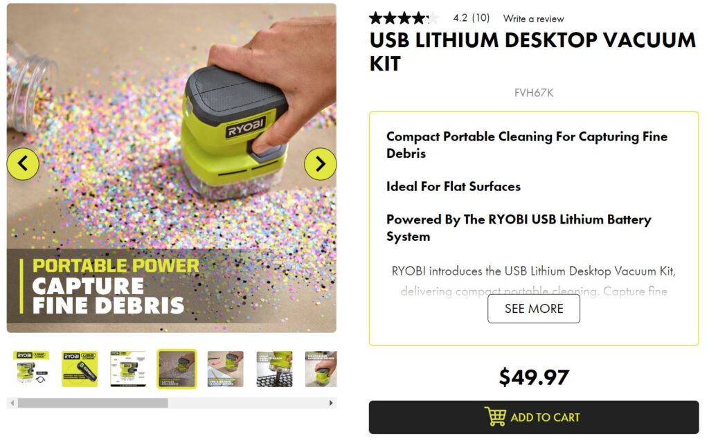 Posted in Article tools I want 2024-08-30 Leave a Comment on tools I want in no particular order, although mostly reverse cron order. Jump Starter. Desktop Vacuum Cleaner. Fuck ya! Ryobi 18V0ne Heat Gun, model P3150 Ryobi handheld 18vone chainsaw